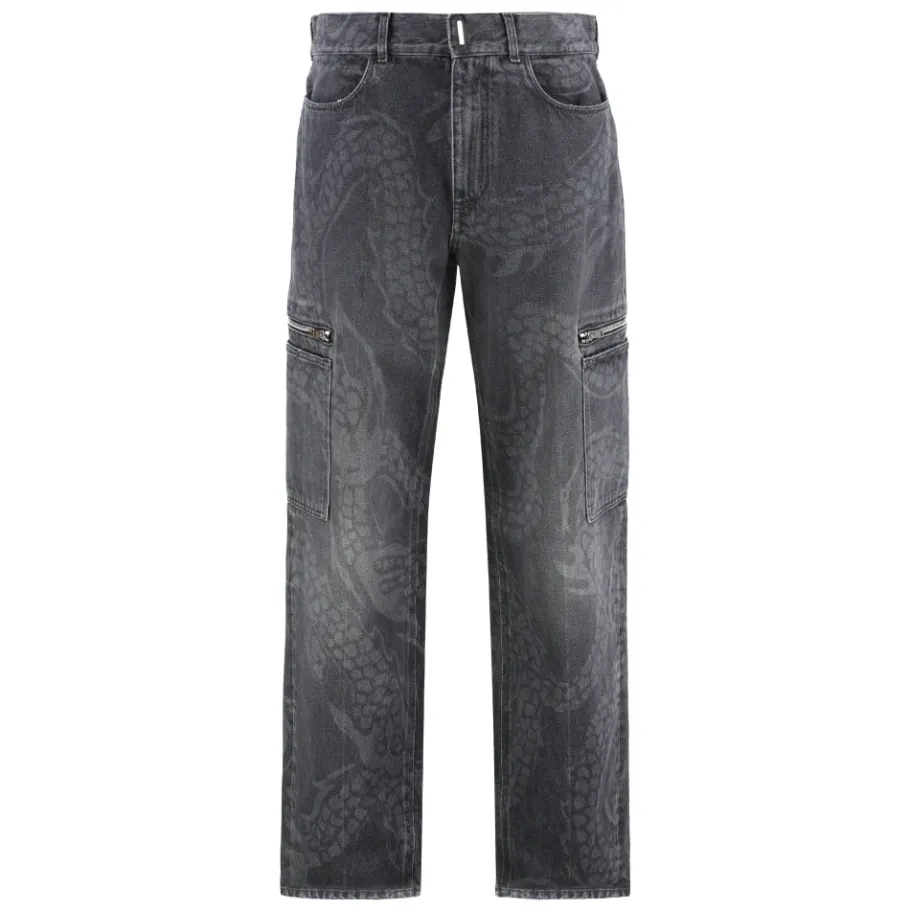 De Givenchy Cargo Jeans combineren functionaliteit met meerdere veilige zakken voor dagelijks gebruik en praktische styling. Belangrijkste kenmerken: Zwart | Meerdere zakken aan de voorkant (plat en met rits) | Twee platte zakken aan de achterkant | Cargozakken | Riemlussen | Ritssluiting met knoop | Rechte pijp | Cargo-stijl details | Stiksel