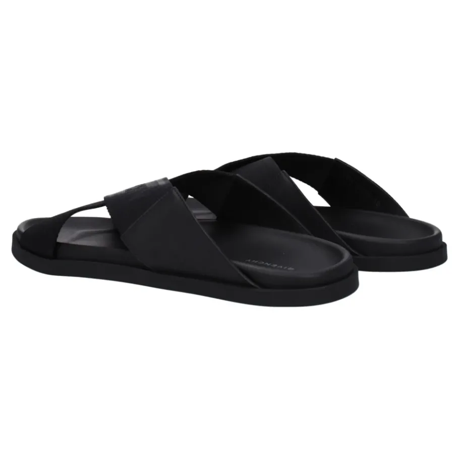 Ontdek de stijlvolle Givenchy zwarte sliders voor heren, met een ontwerp met een logo aan de voorkant. Gemaakt van leer met een rubberen zool, zijn deze open teen sliders perfect voor casual gebruik. Onderdeel van de nieuwe collectie. MPN: BH301ZH1H5001, Code: F78565.