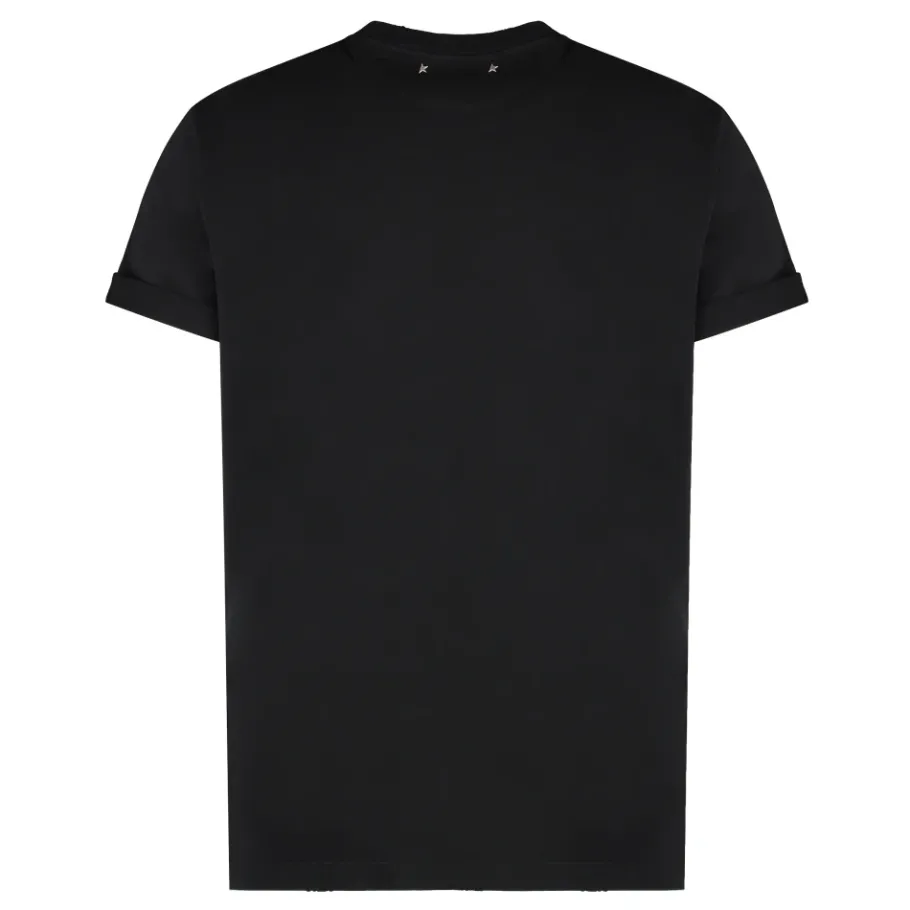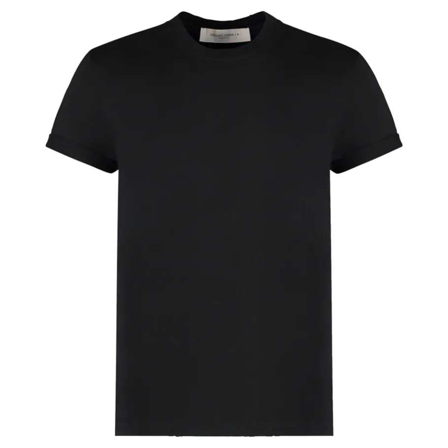 Het Golden Goose Cotton Crew-Neck T-Shirt combineert een klassiek silhouet met ronde hals met kenmerkende distressed details en logo-accenten voor een alledaagse casual look. Belangrijkste kenmerken: Zwart | Katoen | Ronde hals | Geribbelde kraag | Destroyed effect | Gedrukt logo op de voorkant | Ster motief op de achterkant | Korte mouwen | Afmetingen & pasvorm: Regular fit | Samenstelling & verzorging: 100% Katoen