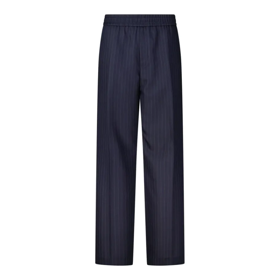 De Golden Goose Wijde Broek van zuiver scheerwol combineert een klassieke krijtstreep met een ruim, relaxed silhouet voor alledaagse tailoring met extra bewegingsvrijheid. Deze broek is vervaardigd in Italië en combineert een verfijnde afwerking met praktische details zoals een elastische tailleband met trekkoord en zijzakken. Belangrijkste kenmerken: Blauw | Marineblauw | Zuiver scheerwol | Elastische tailleband met trekkoord | Zijzakken | Krijtstreeppatroon | Wijde pijp | Afmetingen en pasvorm: Relaxte pasvorm | Wijde pijp | Samenstelling en verzorging: Zuiver scheerwol | Uitsluitend chemisch reinigen