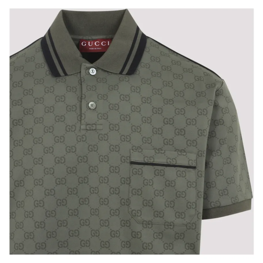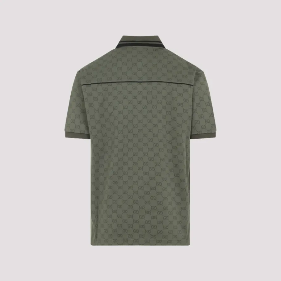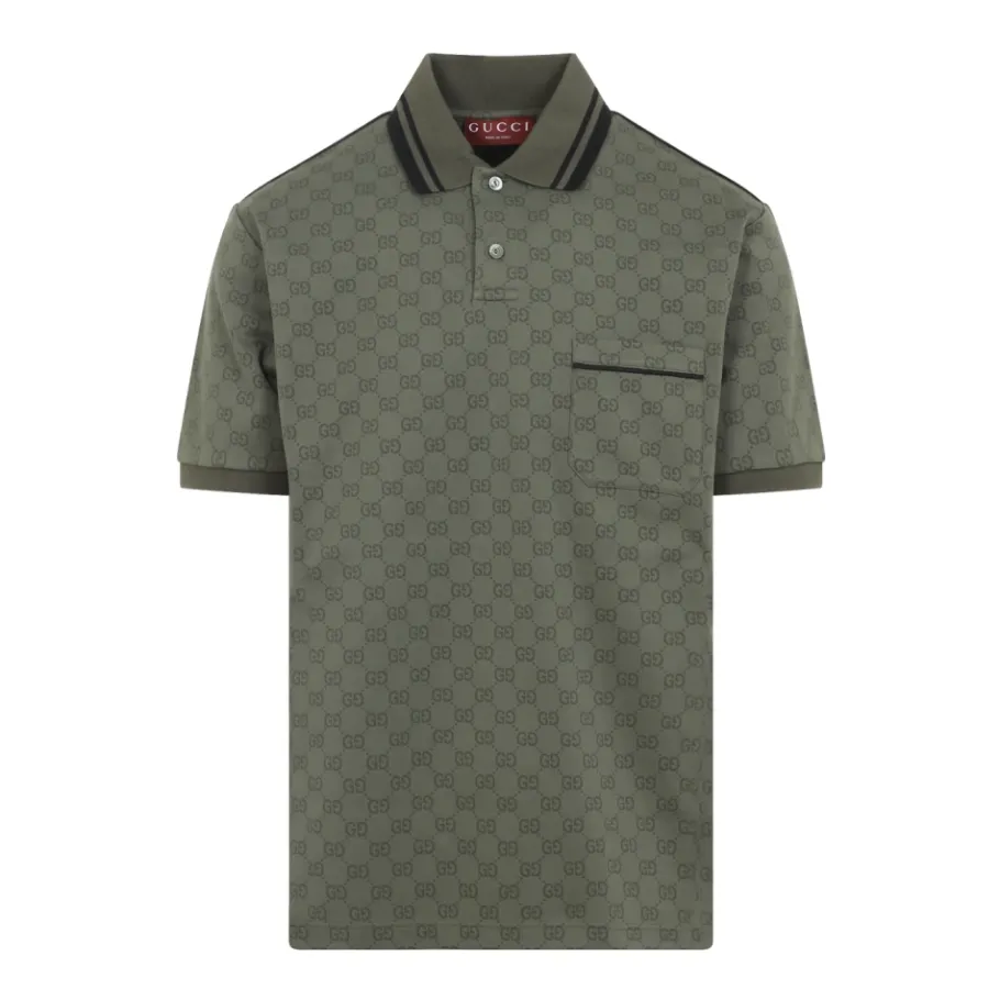 De Gucci New Forest Polo combineert een klassiek polo silhouet met het kenmerkende GG-patroon van het merk voor een verfijnde alledaagse look. Belangrijkste kenmerken: Groen | New forest groen | Polyamide en katoenmix | Borstzakje | Klassieke polokraag | Korte mouwen | Rechte zoom | Zwarte randafwerking | All-over groen GG-logo patroon | Samenstelling & verzorging: Polyamide | Katoen