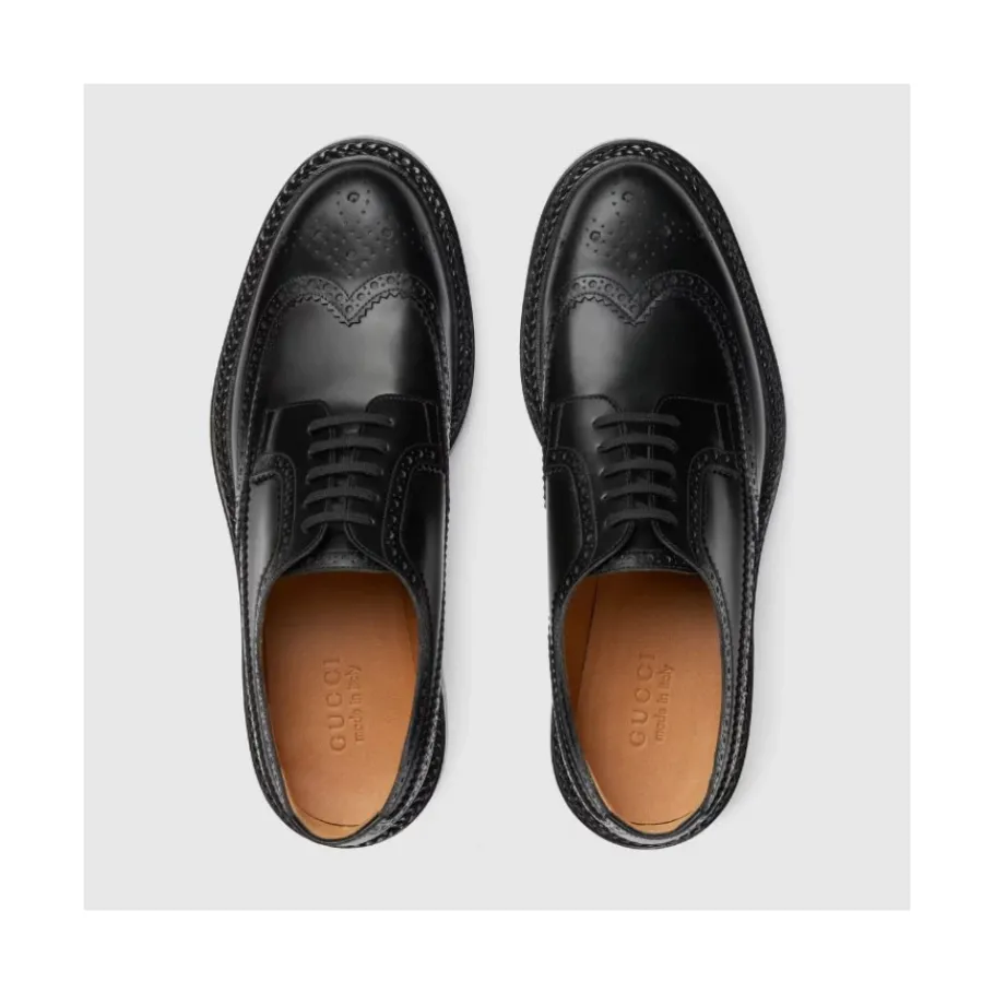 Geef je stijl een boost met deze schoenen met veters van Gucci, met ingewikkelde brogue details, perfect voor diverse gelegenheden. Belangrijkste kenmerken: Zwart | Leer | Brogue details | Afmetingen en pasvorm: Normale pasvorm | Samenstelling en onderhoud: Leer | Reinigen met een zachte doek