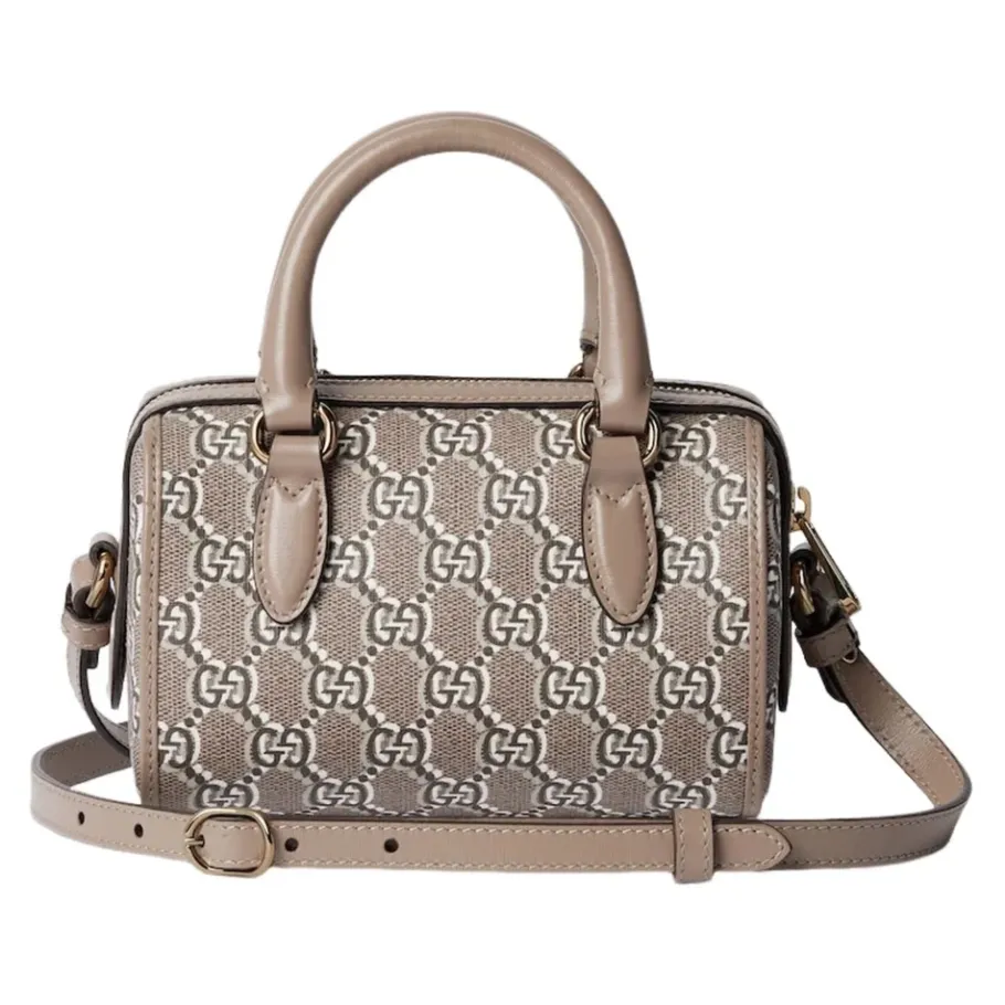 De Gucci Super Mini Ophidia Bowler Bag combineert het GG Shadow monogram canvas met leren details voor een compacte, gestructureerde tas. Het handvat aan de bovenkant en de afneembare, verstelbare schouderriem maken hem geschikt om in de hand of crossbody te dragen. Belangrijkste kenmerken: Bruin | Taupe | Multicolor | GG Shadow monogram canvas en leren details | Ritssluiting | Handvat aan de bovenkant | Afneembare en verstelbare schouderriem | Twee interne kaartvakken | GG Shadow monogram patroon | Bowler silhouet | Leren details | Moiré interieur voering | Lichtgoudkleurige hardware | Afmetingen & pasvorm: Ca. 14,6 cm breedte x 17,8 cm hoogte x 7,6 cm diepte | Ca. 0,37 kg gewicht