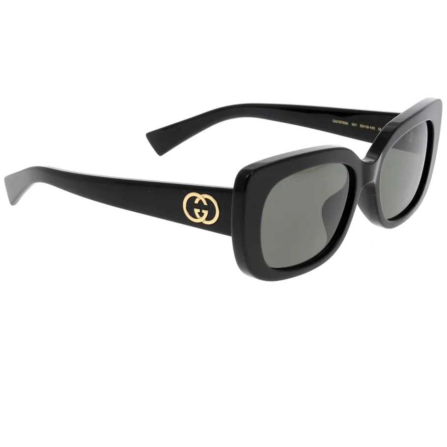 Gucci zonnebrillen met een tijdloos silhouet, ontworpen voor dagelijks gebruik en verfijnde styling. Belangrijkste kenmerken: Zwart | Afmetingen & pasvorm: Lensbreedte: 55 mm | Brugbreedte: 18 mm | Temple lengte: 145 mm
