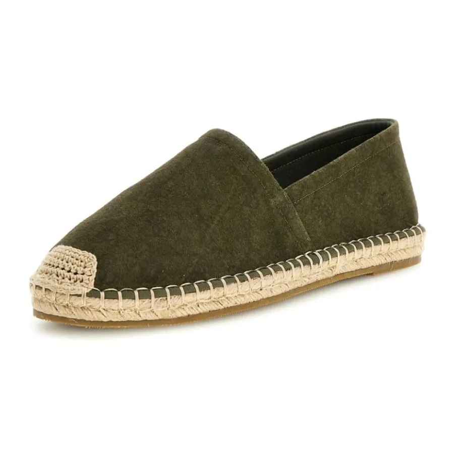 Guess jeans Espadrilles voor heren van 100% katoen. Kleur: GROEN. Neus: rond. Hak: plat. Binnenzool: textiel. Sluiting: instapper. Maatadvies: neem uw gebruikelijke maat. Materiaal: 100% katoen.