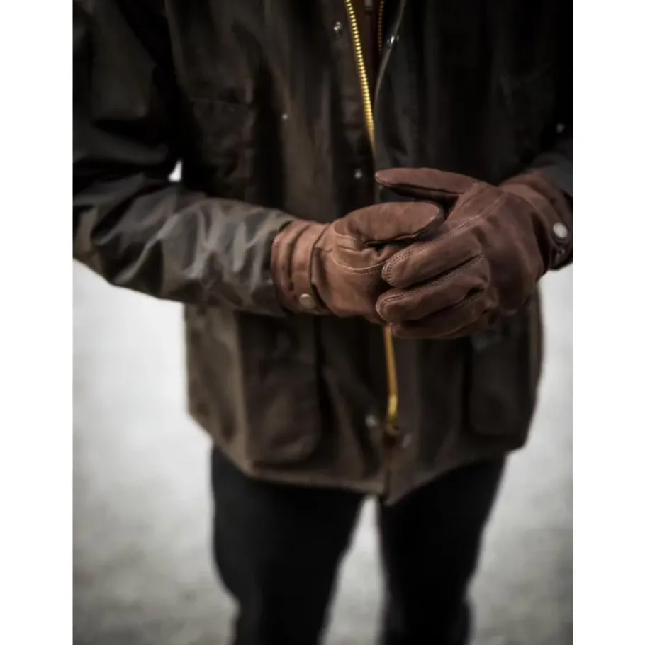 Blijf warm en stijlvol met deze klassieke lederen handschoenen met Primaloft vulling voor uitzonderlijke warmte en comfort. Belangrijkste kenmerken: Bruin | Geiten nubuckleer | Warmte | Comfort | Riem aan de pols | Korte geribde wollen boord | Voorgevormde pasvorm | Half-piqué naad | Afmetingen en pasvorm: Regular fit | Samenstelling en onderhoud: 100% geiten nubuckleer | 100% polyester fleece | 100% Primaloft-Gold | Alleen vlekken reinigen