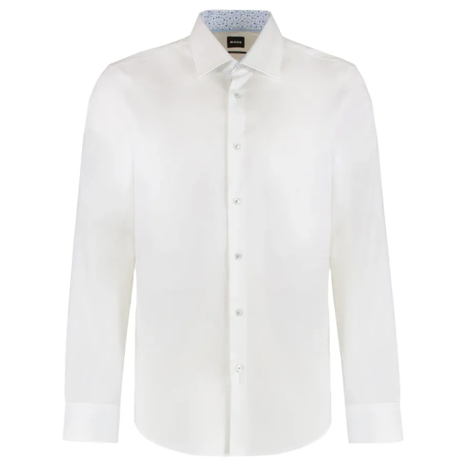 Het Hugo H-JOE Kent Shirt is een wit overhemd met een normale pasvorm, gemaakt van easy-iron katoenpoplin. Het is ontworpen voor een strakke, formele look met details die de styling de hele dag netjes houden. Belangrijkste kenmerken: Wit | Katoen | Easy-iron finish | Kent kraag | Schuine manchetten | Afgeronde zoom | Afmetingen & pasvorm: Normale pasvorm | Samenstelling & verzorging: 100% katoen | Machinewas 40°C (bonte was). Niet bleken. Niet in de droogtrommel. Strijken op middelhoge temperatuur. Professionele stomerij (P).