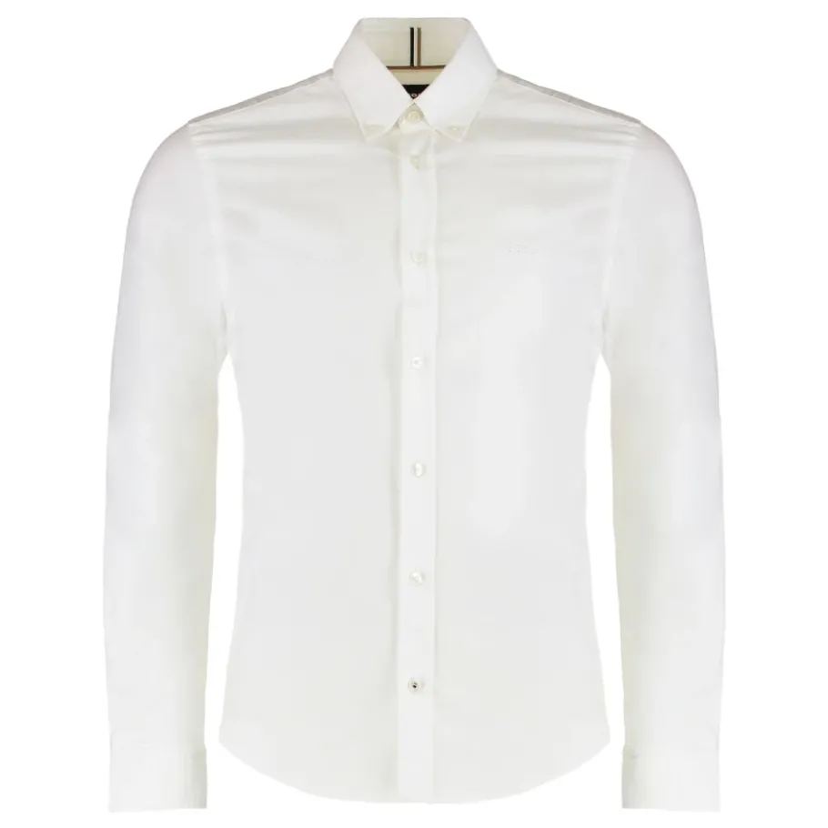 Het Hugo katoenen overhemd is een klassiek wit overhemd, ontworpen met een button-down kraag en lange mouwen. Het biedt een stijlvolle optie voor formele gelegenheden of een verfijnde casual look. Belangrijkste kenmerken: Wit | Katoen | Comfortabel | | Knoopsluiting aan de voorkant | Knopen aan de manchetten | Button-down kraag | Lange mouwen | Klassiek ontwerp | Afmetingen en pasvorm: Slim fit | Samenstelling en onderhoud: 100% Katoen | Machinewas koud, fijne was. Niet bleken. Drogen in de droogtrommel op lage temperatuur of hangend drogen. Strijken op middelhoge temperatuur.