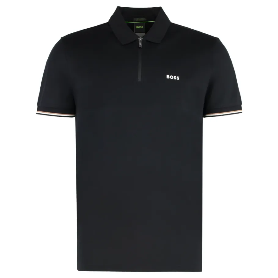 Het Hugo katoenen polo shirt combineert een klassiek polo silhouet met geribbelde boorden voor een strakke, gestructureerde look. De regular fit en 100% katoenen stof maken het een comfortabele keuze voor dagelijks gebruik. Belangrijkste kenmerken: Zwart | Katoen | Polo kraag | Geribbelde boorden | Afmetingen & pasvorm: Regular fit | Samenstelling & onderhoud: 100% Katoen
