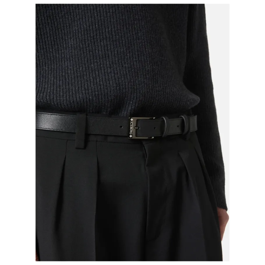 De Iceberg Nappa leren riem combineert zacht nappaleer met een vierkante gesp met logo-gravure om een grafische finishing touch toe te voegen aan eigentijdse outfits. Belangrijkste kenmerken: Zwart | Nappa leer | Gespsluiting | Vierkante gesp met gegraveerd logo | Reliëfdetails aan de punt | Grafische, eigentijdse esthetiek | Samenstelling & onderhoud: Nappa leer