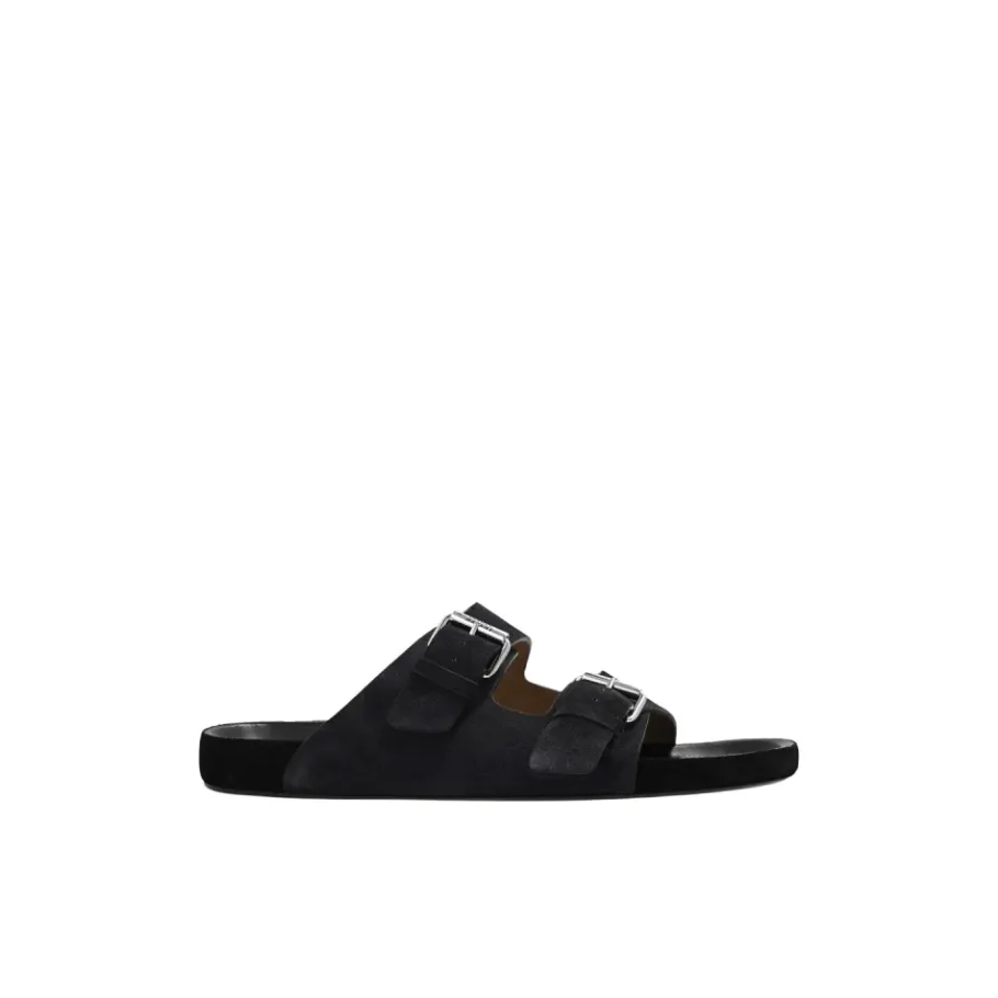 Ontdek de Isabel Marant Lekson Slippers, vervaardigd uit luxueus suède met verstelbare bandjes en een logo-gegraveerde gesp, perfect voor stijlvol comfort. Belangrijkste kenmerken: Donkergrijs | Zwart | Suède | Verstelbare bandjes | Logo-gegraveerde gesp | Samenstelling en onderhoud: Suède | Leer
