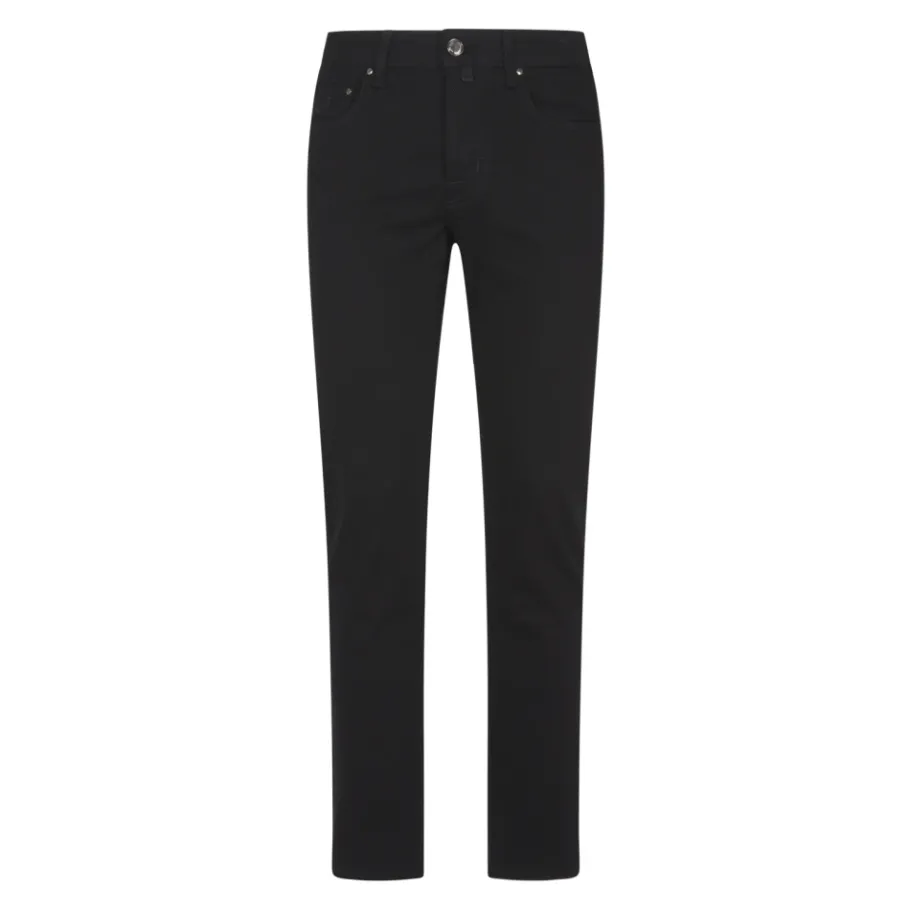 Ervaar het verfijnde vakmanschap van Jacob Cohën met deze Zwarte Jeans, ontworpen voor een strakke en verfijnde look. Belangrijkste kenmerken: Zwart | Katoen | Afmetingen en pasvorm: Slim-fit | Samenstelling en onderhoud: 98% Katoen | 2% Elastaan | Machinewas koud, droogtrommel laag.