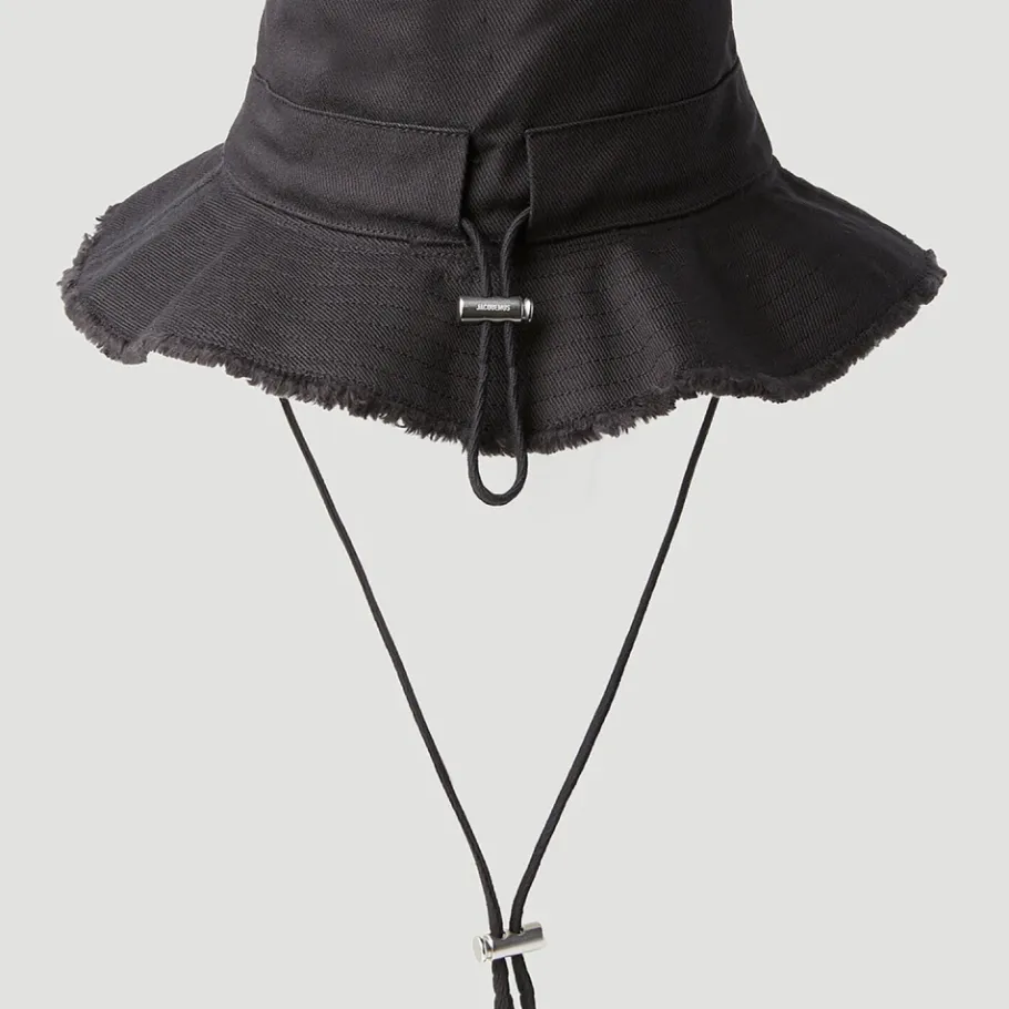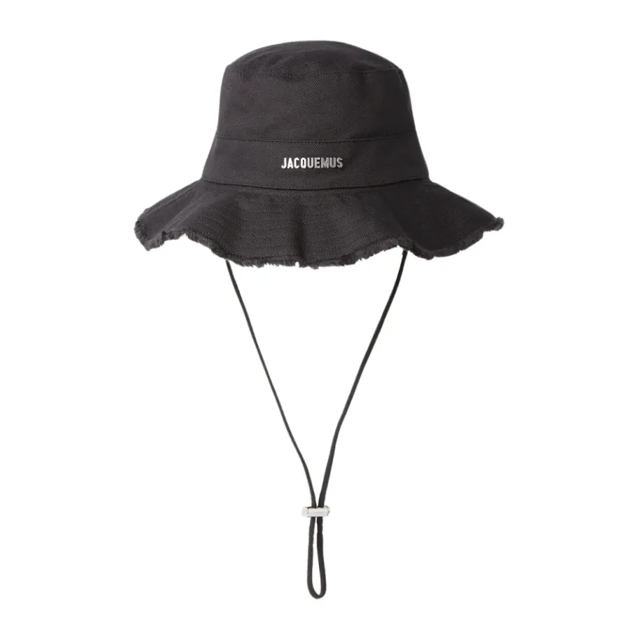 Omarm de relaxte charme van Zuid-Frankrijk met Jacquemus. De Le Bob Artichat Hat is gemaakt van 100% katoen in een keperweefsel, met een platte kroon, verlaagde rand, voorlogo-plaat, kinband, achterste aantrekkoord en rafelige afwerking.