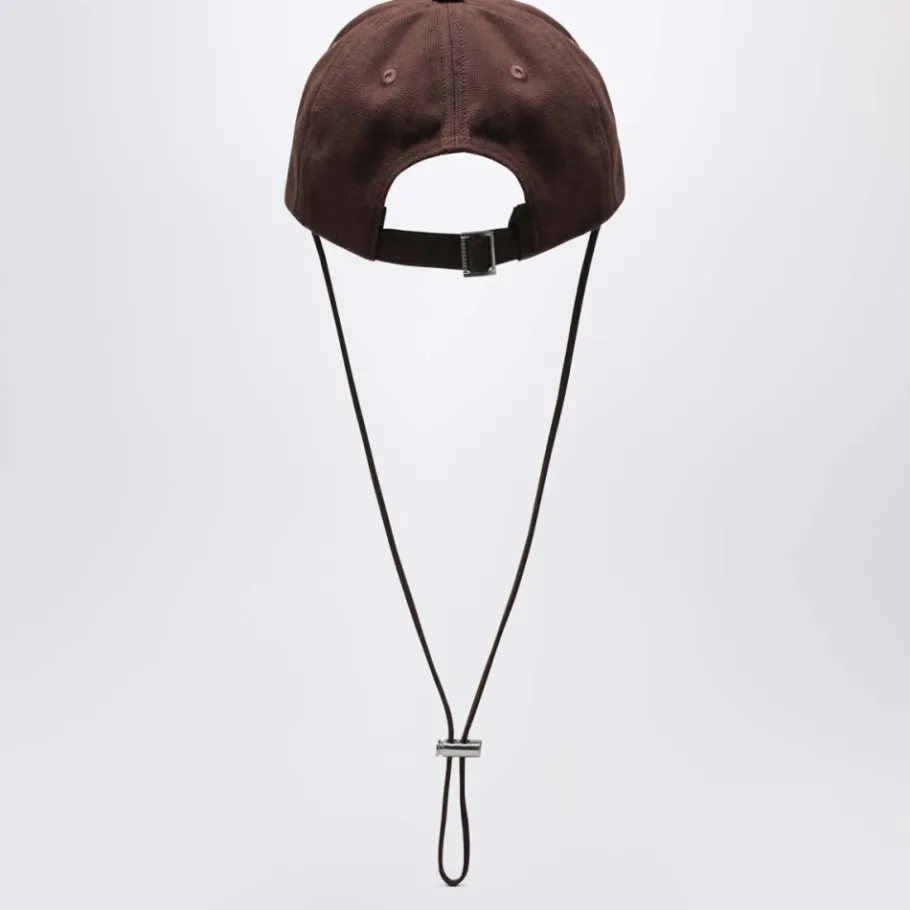De Jacquemus La Casquette Artichaut Cap combineert kenmerkende minimalistische hardware met een gerafelde rand voor alledaagse styling. De katoenen canvas constructie en verstelbare details maken het een praktische, modieuze pet. Belangrijkste kenmerken: Bruin | Katoen | Verstelbare band aan de achterkant | Trekkoord onder de kin | Metalen sluiting | Ventilatiegaten | Canvas constructie | Gerafelde rand aan de klep | Minimaal metalen logo plaatje | Afmetingen & pasvorm: Maat: 58 cm | Valt normaal qua maat | Samenstelling & verzorging: 100% katoen
