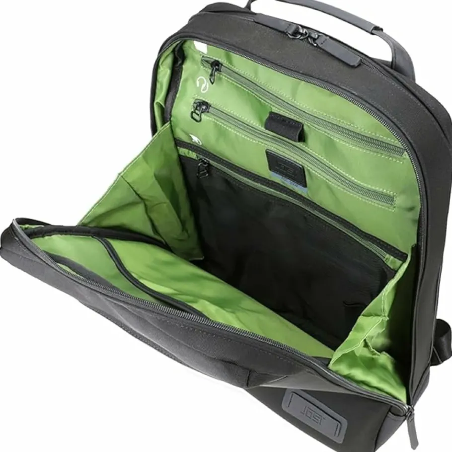 Blijf georganiseerd en stijlvol met deze Jost-rugzak. Met een gevoerd laptopvak (23x38x3 cm) en een tabletvak (18.5x26x1 cm) is deze rugzak perfect voor je dagelijkse benodigdheden. Afmetingen: 32x41x13 cm.