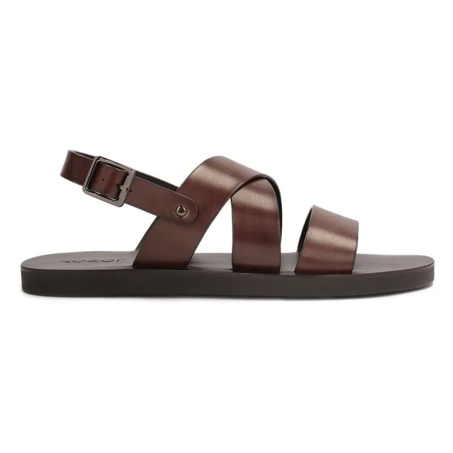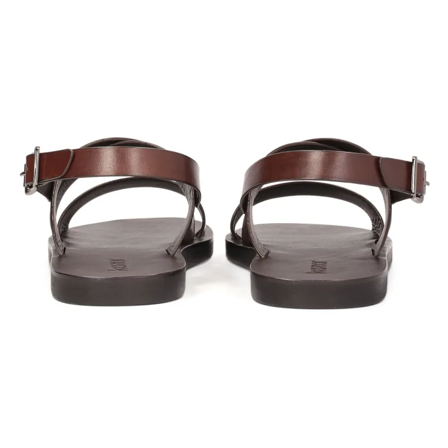 Heren sandalen met brede banden en enkelband zijn gemaakt voor mannen die op zoek zijn naar comfortabele en ademende zomerschoenen. De leren banden houden de voet perfect op zijn plaats, waardoor de schoenen prettig en comfortabel zijn om te dragen. Bruin is een van de meest veelzijdige kleuren naast zwart. De leren voering zorgt voor comfort tijdens het lopen.