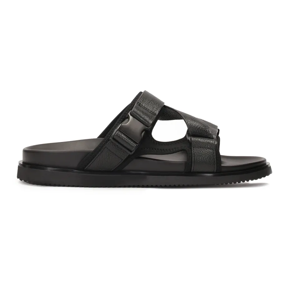 Zwarte slippers met gesp zijn een betrouwbare keuze voor mannen die zowel stijl als comfort waarderen, ongeacht de plaats en omstandigheden. Het graanleer waarvan ze gemaakt zijn, is zacht en aangenaam om aan te raken, wat zorgt voor comfortabel gebruik. Een uiterst onderscheidend element van deze slippers is de opvallende gesp, die ze een uniek karakter geeft. Dit is een verfijnd detail dat ze onderscheidt van andere modellen. De slippers bieden ook uitstekend comfort dankzij de voorgevormde zool, die stappen dempt en stabiliteit biedt. Dit schoeisel ziet er niet alleen mooi uit, maar biedt ook ademend vermogen en comfort, waardoor ze een absoluut essentieel onderdeel zijn van je zomergarderobe.