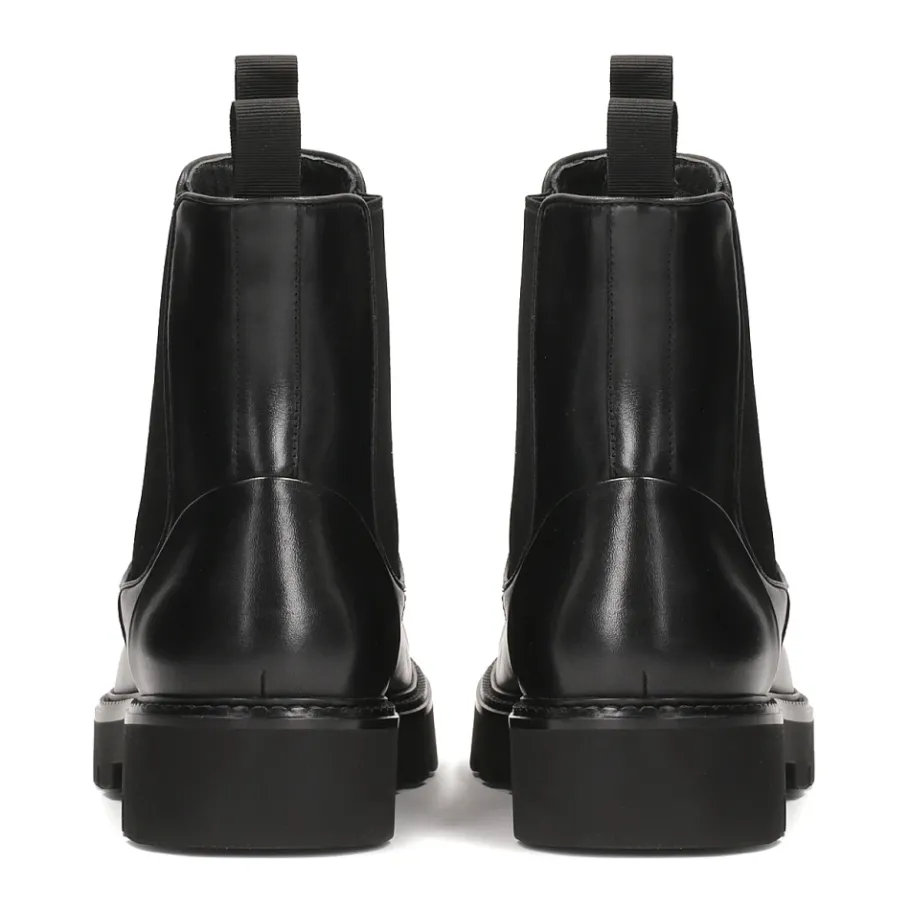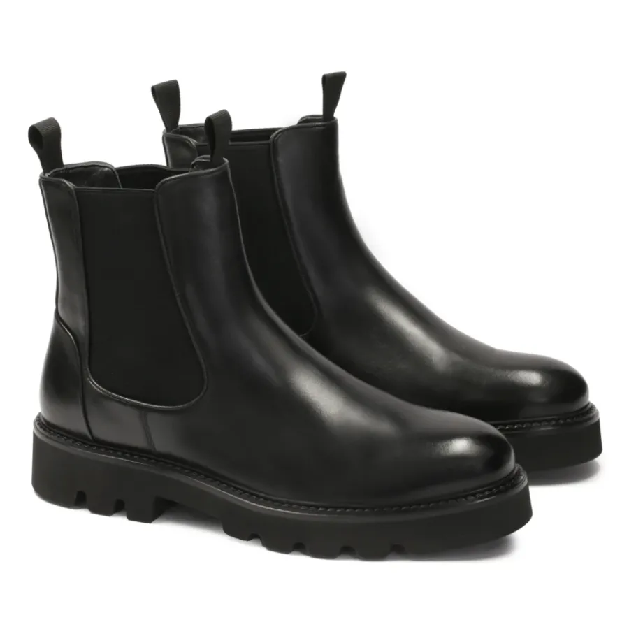 Zwarte herenslippers van natuurlijk leer combineren klassieke stijl met functionaliteit die ideaal is voor koudere dagen. Natuurlijk leer zorgt voor een elegant uiterlijk, evenals duurzaamheid en weerbestendigheid. Dit model is uitgerust met een profielzool, die bekend staat om zijn duurzaamheid en uitstekende grip, waardoor de schoenen perfect zijn voor gladde of oneffen oppervlakken. De slippers hebben kenmerkende elastische rubberen inzetstukken aan de zijkanten van de bovenkant, waardoor het gemakkelijker wordt om de schoenen aan en uit te trekken en zorgen voor een betere pasvorm en comfort. De gepresenteerde slippers zijn een uitstekende keuze voor mannen die de combinatie van klassieke elegantie met praktische oplossingen waarderen. Het met textiel gevoerde interieur van de schoen zorgt voor een gevoel van comfort en warmte.