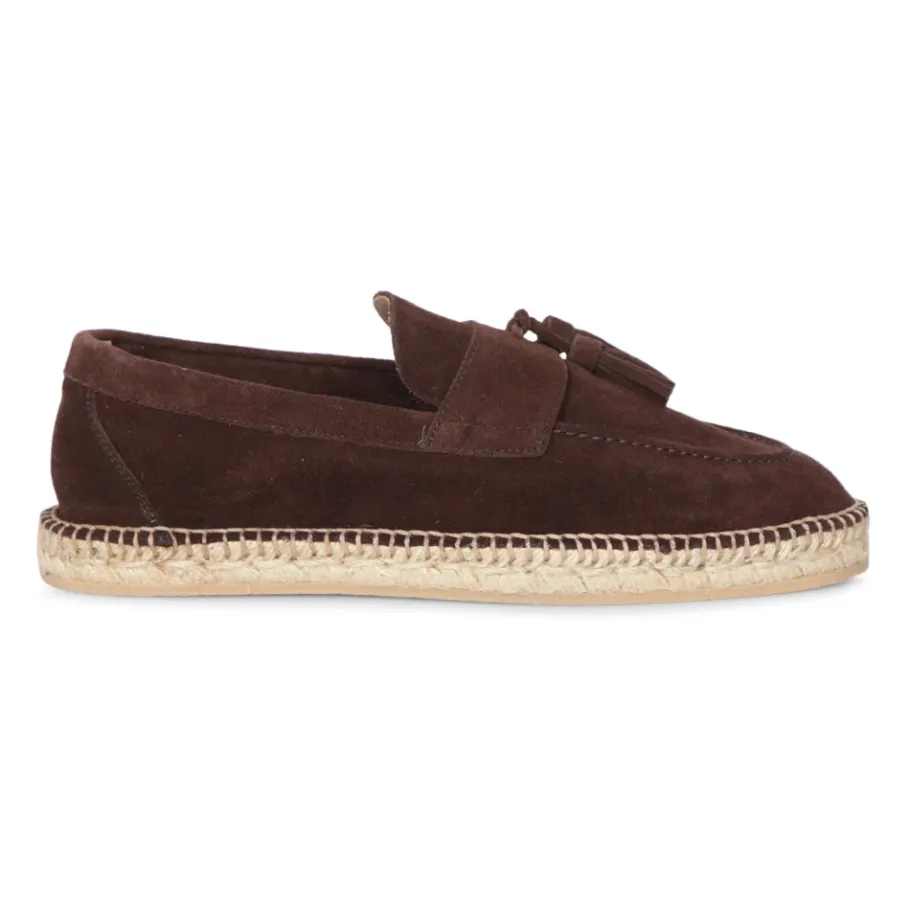 Ervaar tijdloze elegantie met deze Lardini espadrilles, vervaardigd uit luxueus bruin suède en voorzien van een traditionele touwzool en handgestikte details. Belangrijkste kenmerken: Bruin | Kalfsleer | Handgestikte details | Touwzool | Samenstelling en onderhoud: 100% kalfsleer