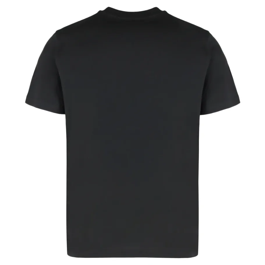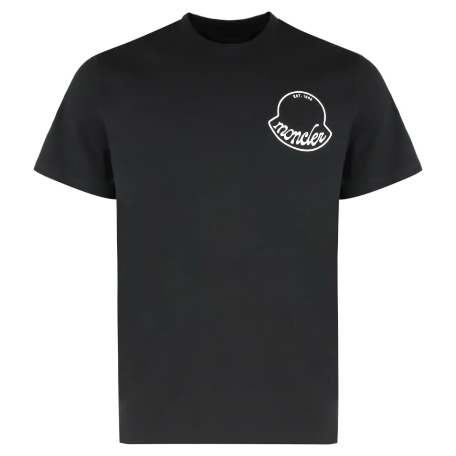 De Moncler Logo Katoenen T-Shirt is een strak, alledaags basisstuk, gekenmerkt door een geribbelde ronde hals en een gestempeld logo-detail. Hij is ideaal als basislaag of als een minimalistische top op zichzelf. Belangrijkste kenmerken: Zwart | Katoen | Zachte katoenen jersey | Geribbelde ronde hals | Korte mouwen | Gedrukt en gebosseleerd logo | Logopatch op de mouw | Afmetingen & pasvorm: Regular fit | Samenstelling & onderhoud: 100% katoen | Machinewas max. 30°C; mild proces.