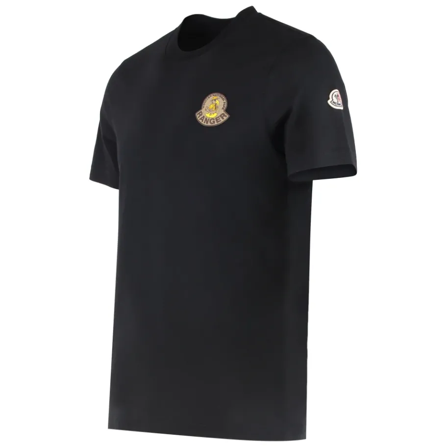 Het Moncler Mon Duck Logo Katoenen T-Shirt combineert een kenmerkende Mon Duck patch met zachte katoenen jersey voor ademend, de hele dag comfort en veelzijdige casual styling. Belangrijkste kenmerken: Zwart | Katoen | Ademende stof | Zacht aanvoelend | Geschikt voor dagelijks gebruik | Gemakkelijk te combineren met casual broeken of jeans | Ronde hals | Korte mouwen | Mon Duck logo patch | Afmetingen & pasvorm: Regular fit | Samenstelling & verzorging: 100% Katoen | Machinewas koud (max. 30°C) – mild proces; niet bleken; niet in de droogtrommel; strijken max. 110°C zonder stoom; niet chemisch reinigen; professioneel nat reinigen (mild); plat drogen in de schaduw.