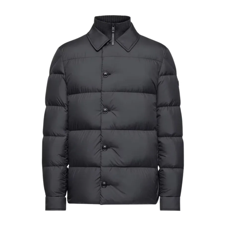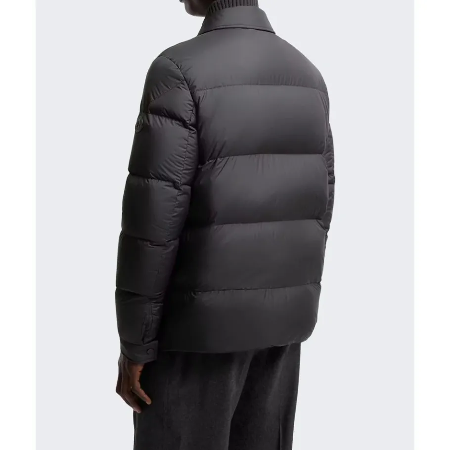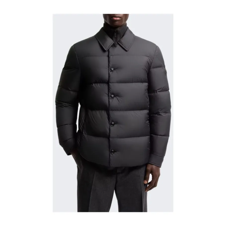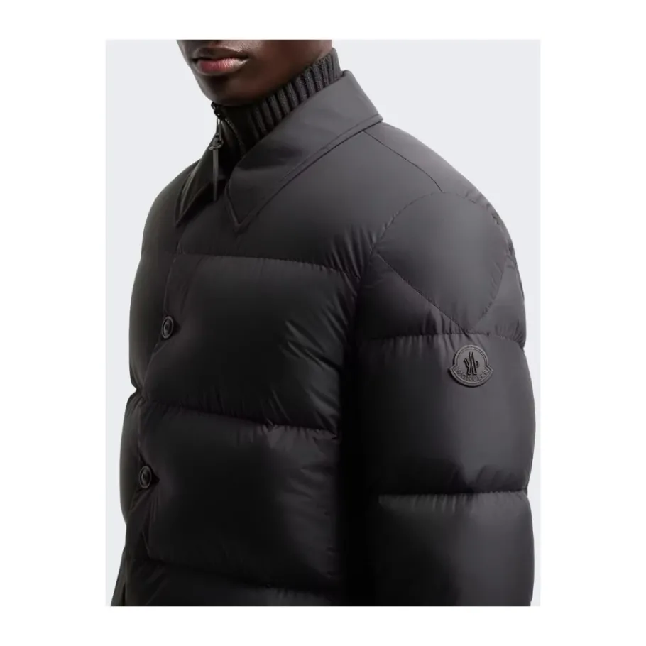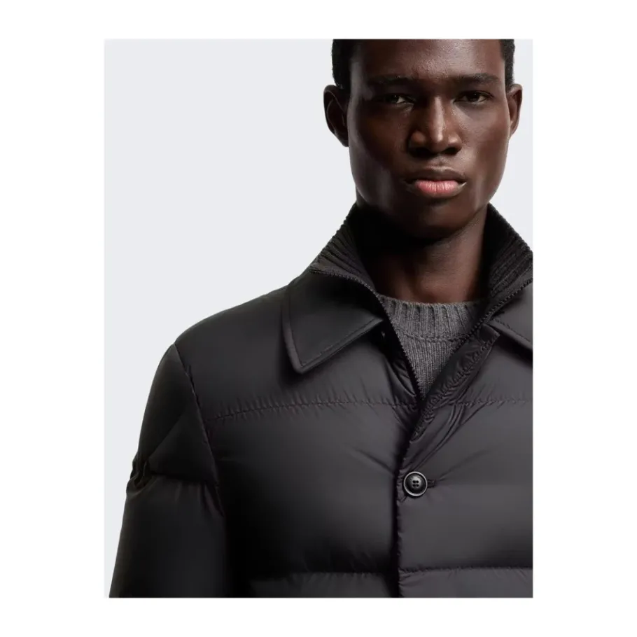 De Moncler Pres Shirt Jacket combineert de warmte van een donsjack met een strak, shirt-achtig silhouet voor lichtgewicht isolatie en een verzorgde stadse look. Belangrijkste kenmerken: Zwart | Warme isolerende donsvulling | Windbestendig | Waterafstotend | Verborgen ritssluiting onder knoopsluiting | Verborgen zijzakken | Shirtkraag | Horizontale quilting | Kort, regular-fit silhouet | Subtiel verbreedde schouders | Afmetingen & pasvorm: Valt normaal qua maat