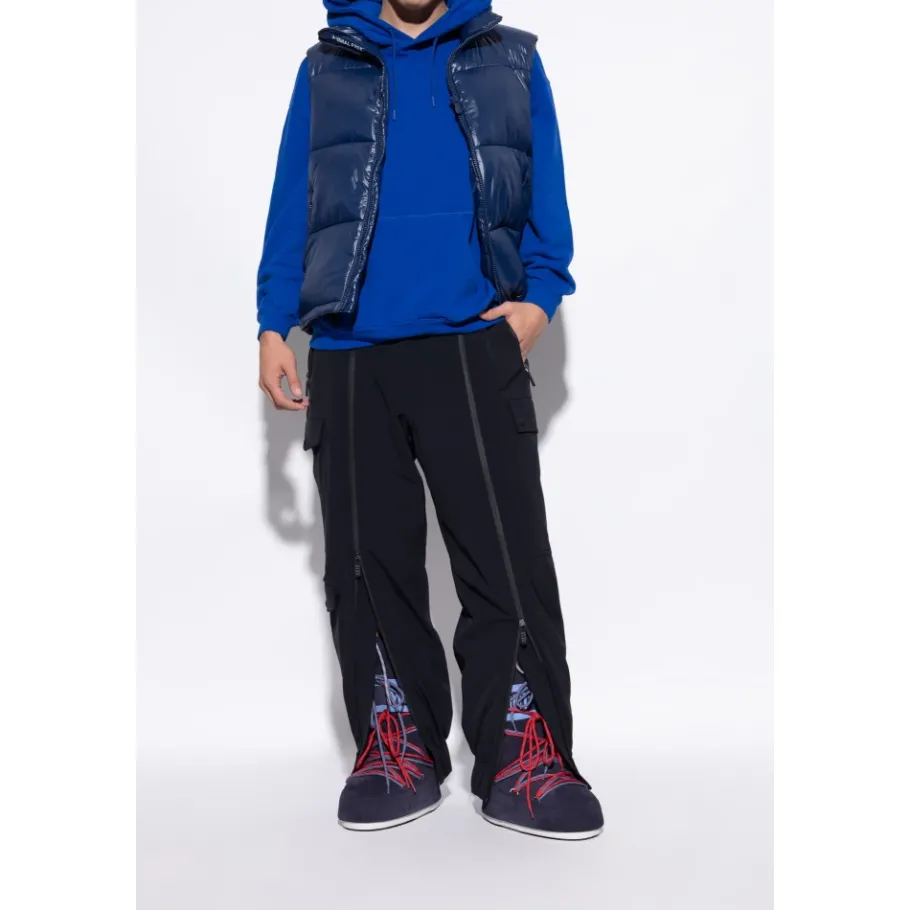 ‘ICON SUEDE’ SNOW BOOTS uit de Moon Boot-collectie zijn de quintessens van verfijnde elegantie gecombineerd met moderniteit. Ze maken indruk met hun originele vorm – een brede, cilindrische bovenkant rijst ver boven de enkel uit, waardoor een unieke, sculpturale silhouet ontstaat. De bovenkant, gemaakt van zorgvuldig geselecteerd rundersuède, omhult de voet met een fluweelachtige textuur, waarbij de minimalistische, effen marineblauwe kleur wordt geaccentueerd. De gedurfde, contrasterende veters en een blauwe band met de opvallende inscriptie