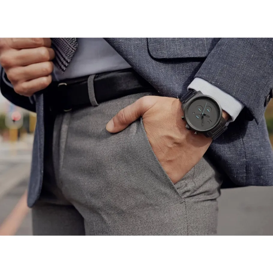 Het MVMT Chronograaf Horloge combineert een 45 mm roestvrijstalen kast met een grijze wijzerplaat en een stopwatchfunctie, en biedt nauwkeurige tijdwaarneming in een strak, modern design. Belangrijkste kenmerken: Zwart | Grijs | Roestvrij staal | Chronograaf (stopwatch) | Grijze wijzerplaat | Roestvrijstalen armband | Afmetingen & pasvorm: Diameter kast: 45 mm | Bandbreedte: 22 mm | Samenstelling & onderhoud: Roestvrij staal