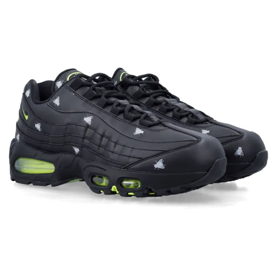 De Nike Air Max 95 PRM vernieuwt het iconische silhouet dat is geïnspireerd op de anatomie met gelaagd synthetisch leer en mesh, en opvallende neongele accenten. Zichtbare Air demping en een gewatteerde middenzool zorgen voor de hele dag comfort met een street-ready stijl. Belangrijkste kenmerken: Zwart | Neon geel | Synthetisch leer en mesh | Zichtbare Air units in de hak en voorvoet | Gewatteerde foam middenzool | Rubberen buitenzool voor grip | Vetersluiting | Gewatteerde kraag | Webbing vetersysteem | Golvend gelaagd bovenwerk | Neon gele contrast accenten | Vliegenprint | Swoosh logo op de zijkant | Samenstelling & onderhoud: Synthetisch leer | Mesh | Foam middenzool | Rubberen buitenzool