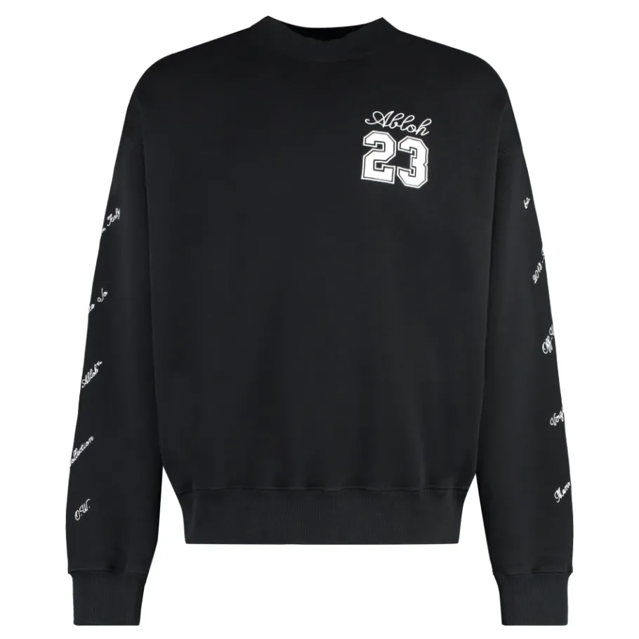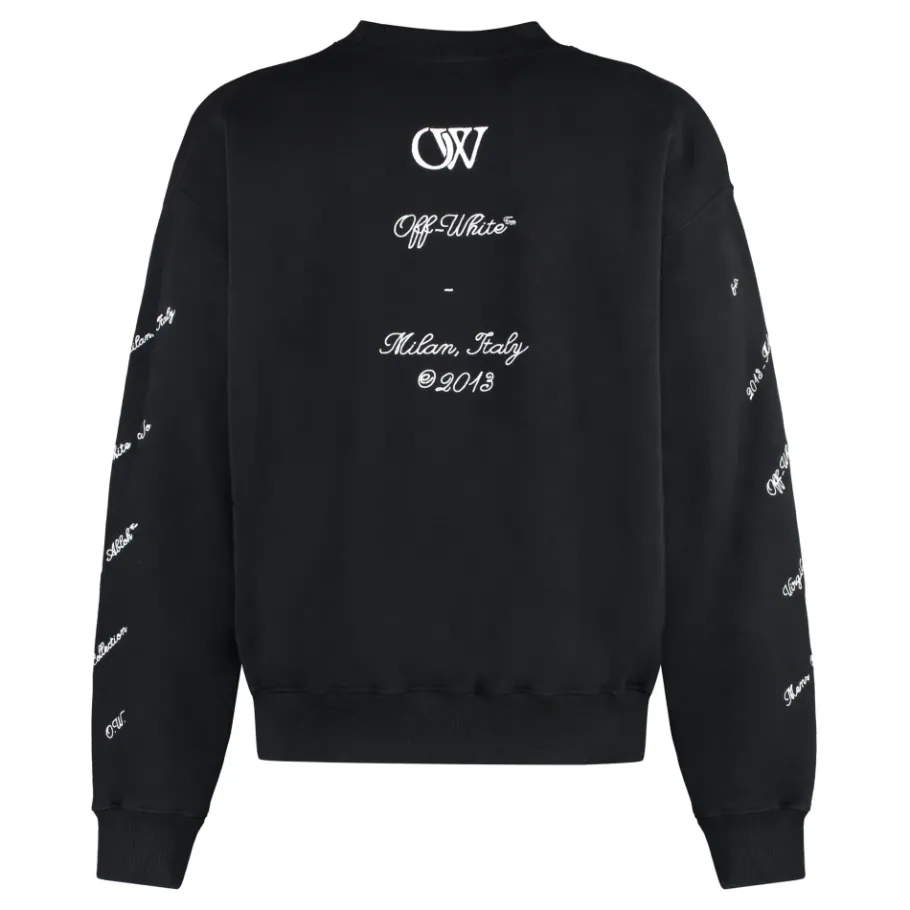De Off-White Cotton Crew-neck Sweatshirt combineert een op skate geïnspireerd silhouet met geborduurde details voor alledaagse streetwear. De geribbelde boorden en zoom met zijsplitten maken het een veelzijdige laag voor casual outfits. Belangrijkste kenmerken: Zwart | Off White | Katoen | Ronde hals | Geborduurde mouwen | Zoomlijn met zijsplitten | Geribbelde boorden | Geborduurd logo | Afmetingen & pasvorm: Skate fit | Samenstelling & verzorging: 100% katoen | Machinewas op 30°C.
