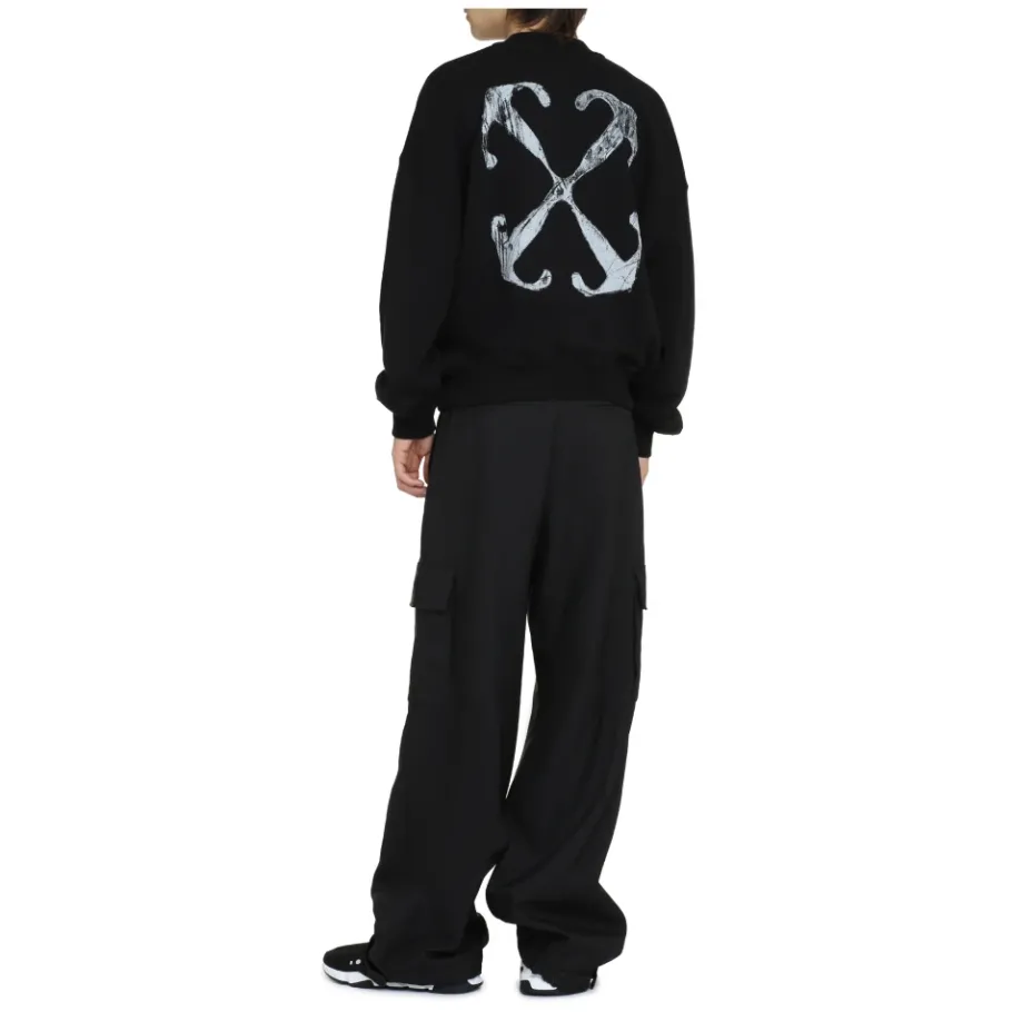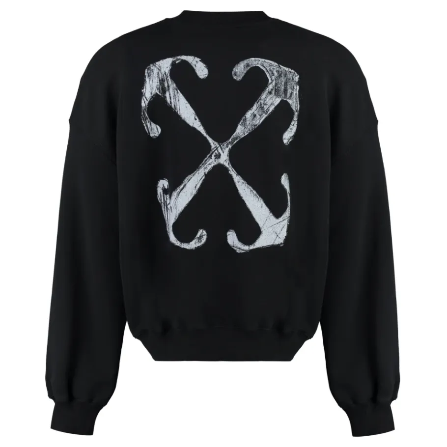 Deze Off-White katoenen sweatshirt met ronde hals combineert een strak silhouet met een opvallende maxi-print op de rug voor een unieke casual look. Belangrijkste kenmerken: Zwart | Katoen | Geribbelde boorden | Ronde hals | Maxi-print op de rug | Gedrukt logo op de voorkant | Samenstelling & onderhoud: 100% katoen | Machinewas op 30°C.