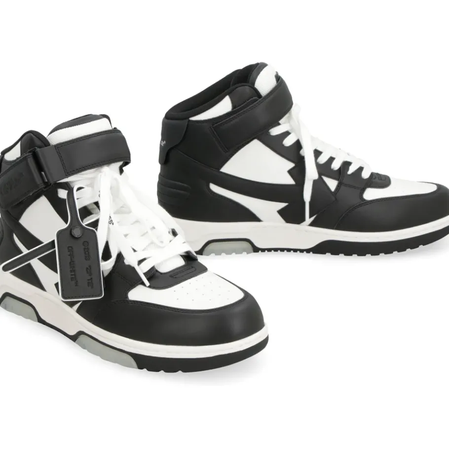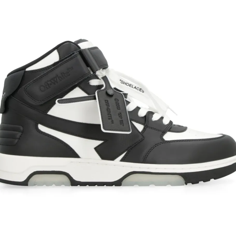 De Off-White Out Of Office High-top sneakers combineren de kenmerkende Arrow-details met een leren constructie voor een gepolijste streetwear-look. Ze zijn gemaakt voor dagelijks gebruik en combineren een gewatteerde tong en rubberen zool voor comfort en grip. Belangrijkste kenmerken: Off white | Wit | Leer | Rubberen zool met logo in reliëf | Stoffen voering | Vetersluiting | Uitneembare binnenzool | Inclusief stofzak | Arrow-motief | Ronde neus | Geperforeerde teen | Afneembaar leren Zip Tie-label | Gewatteerde tong met leren logolabel