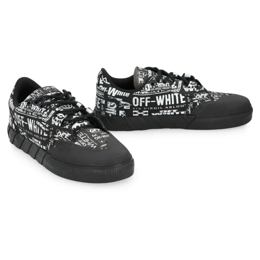 De Off-White Vulc 779 low-top sneakers combineren de kenmerkende logo-print van het merk met een rubberen neus voor een street-ready look. Ze zijn ontworpen voor dagelijks gebruik en combineren een leren constructie met een textielvoering en een rubberen zool. Belangrijkste kenmerken: Zwart | Off white | Leer | Rubberen neus | Doorlopende contrasterende logo-print | Afgeronde neus | Samenstelling & verzorging: 100% Leer | 100% Polyester | 100% Rubber | Raadpleeg de instructies van de fabrikant