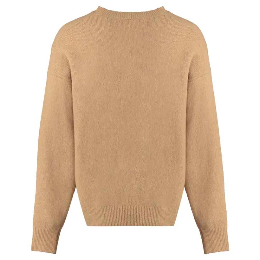 De Palm Angels Logo Crew-Neck sweater is een gebreide trui gemaakt van een merinowolmix, afgewerkt met geribbelde randen en een geborduurd logo voor een verfijnde alledaagse laag. Belangrijkste kenmerken: Bruin | Camel | Merinowol | Ronde hals | Geribbelde gebreide randen | Geborduurd logo op de voorkant | Zijlogo steek | Lange mouwen | Samenstelling & verzorging: 6% Kasjmier | 72% Merinowol | 2% Elastaan | 20% Polyamide | Stomerij