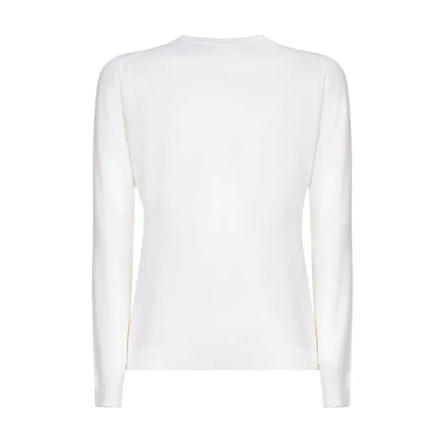 De Paolo Fiorillo Capri trui met ronde hals is een veelzijdige knit die een verfijnde, tijdloze stijl toevoegt aan alledaagse garderobes. Hij kan net zo goed onder een blazer worden gedragen als gecombineerd worden met een chino voor een strakke, elegante look. Belangrijkste kenmerken: Wit | Ronde hals | Knit constructie | Klassiek silhouet