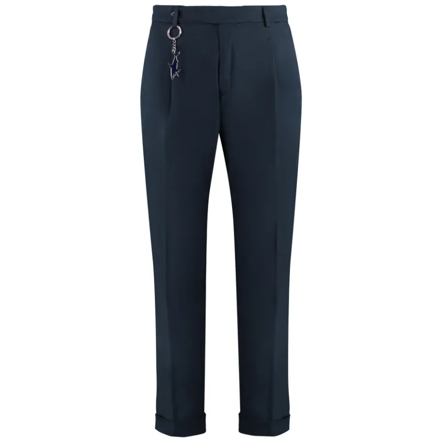 De Paul & Shark katoenen broek combineert een getailleerd, slank silhouet met praktische details. Het ontwerp valt op door de afneembare bedel en meerdere zakken, ideaal voor smart-casual outfits. Belangrijkste kenmerken: Blauw | Katoen | Afneembare sleutelhanger met bedel | Twee zijzakken | Twee achterzakken met klep | Riemlussen | Ritssluiting en knoopsluiting | Achterzakken met klep | Details met klepzakken | Afmetingen & pasvorm: Slanke pasvorm | Samenstelling & onderhoud: 99% katoen | 1% elastaan | Machinewas op 40°C.