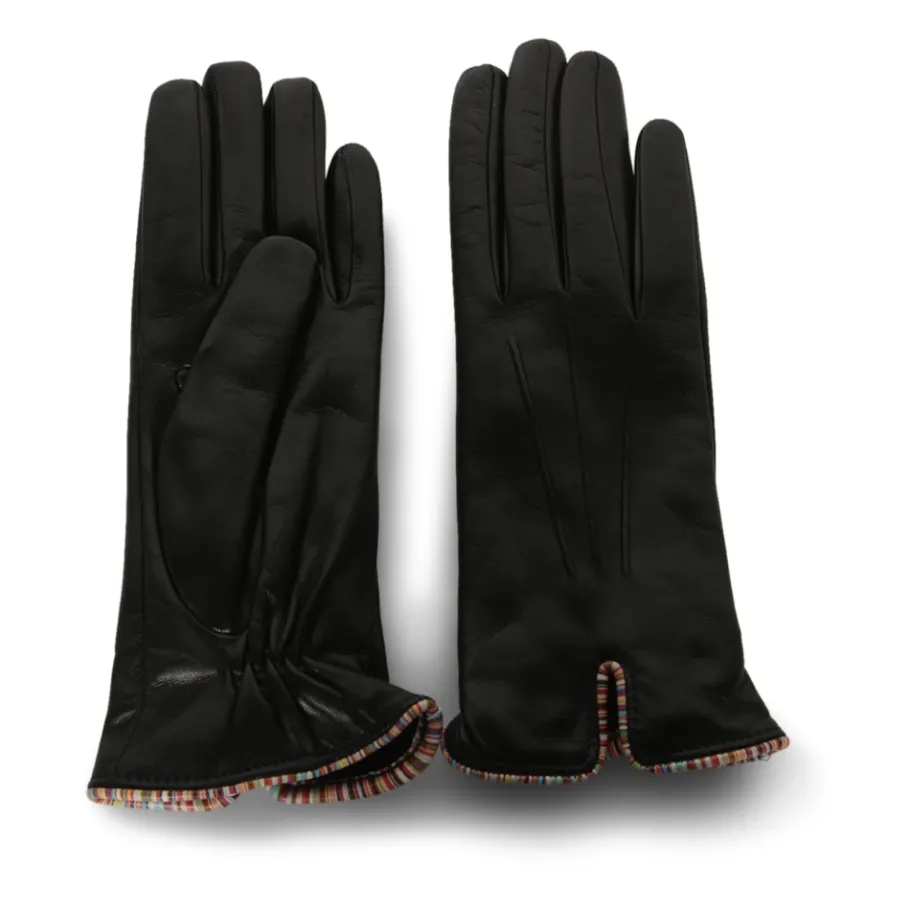 De Paul Smith Signature Stripe leren handschoenen zijn vervaardigd uit glad lamsleer en afgewerkt met de meerkleurige kenmerkende piping van het merk. Ze voegen een verfijnd, eigentijds accent toe aan outfits voor koud weer. Belangrijkste kenmerken: Zwart | Multicolor | Lamsleer | Signature stripe piping | Ton-sur-ton stiksels | Logo in reliëf | Samenstelling & onderhoud: Buitenkant: 100% lamsleer | Uitsluitend chemisch reinigen.
