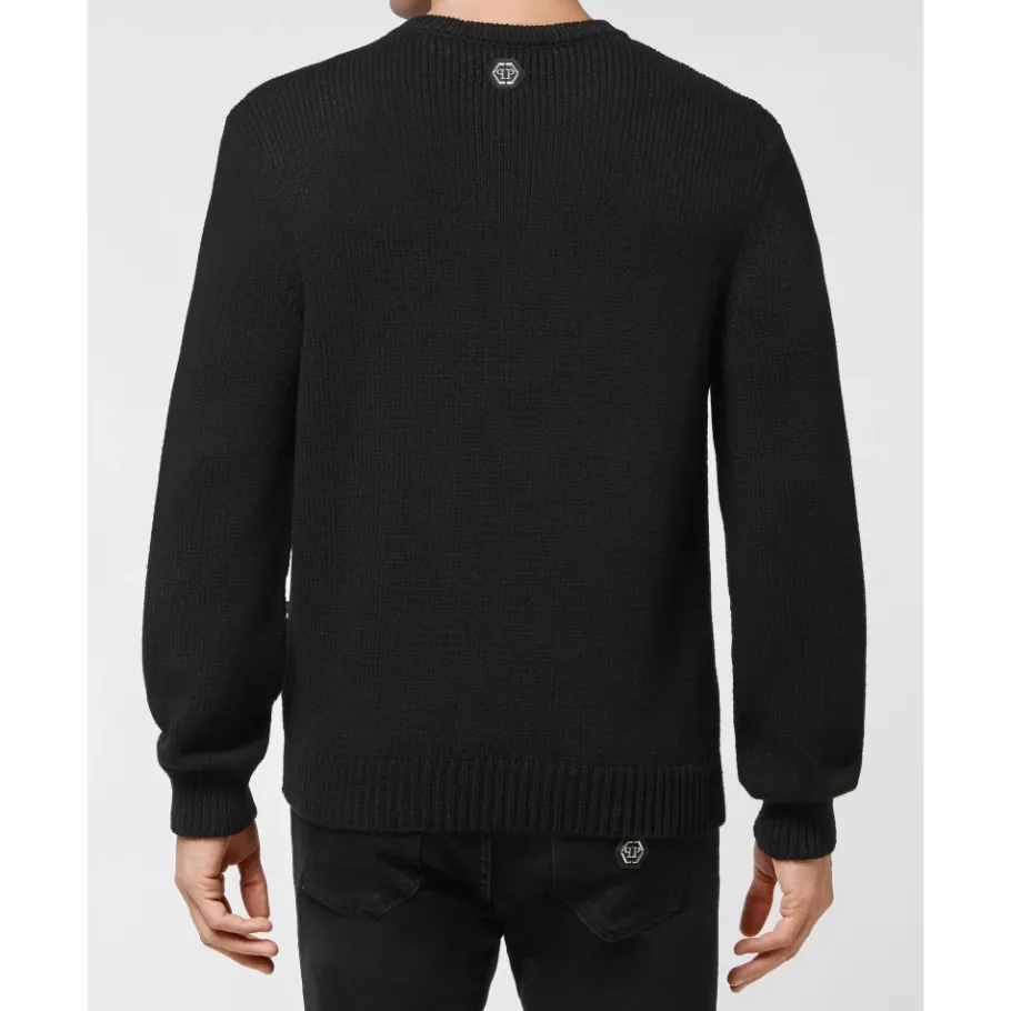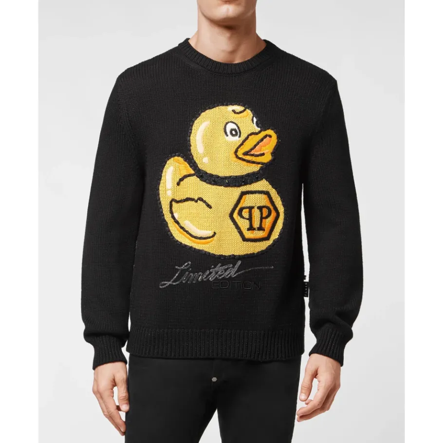 Philipp Plein Wollen Mix Pullover Handgemaakte Borduurwerk PP Duck-Heren Truien & Vesten