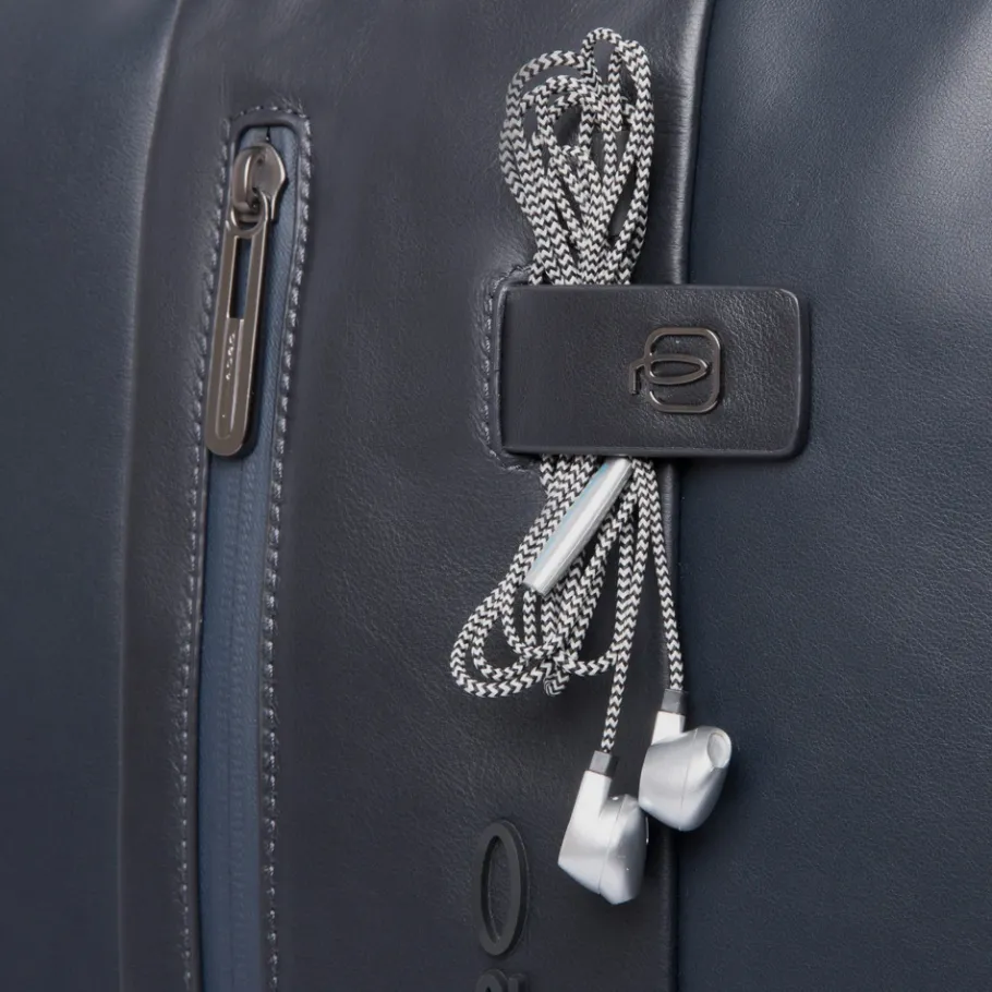 Leather laptop backpack with iPad® compartment, anti-theft cable, CONNEQU pocket, shock absorbing and RIFD protection