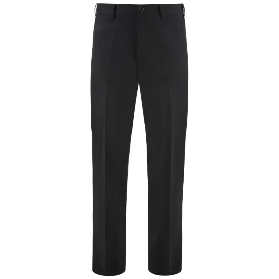 De Prada wollen broek combineert een klassiek recht silhouet met een geperste vouw voor een verfijnde, getailleerde look. Ideaal voor formele of smart-casual gelegenheden, ze combineren strakke lijnen met praktische zakken. Belangrijkste kenmerken: Zwart | Wol | Ritssluiting met knoop | Schuine steekzakken aan de voorkant | Opgestikte zakken aan de achterkant | Riemlussen | Rechte snit | Geperste vouw aan de voorkant | Driehoekig logo van geëmailleerd metaal | Afmetingen & pasvorm: Zoomwijdte: 22 cm | Hoogte: 108 cm | Klassieke pasvorm | Model is 189 cm lang en draagt maat 48 | Samenstelling & verzorging: 100% Wol | Chemische reiniging