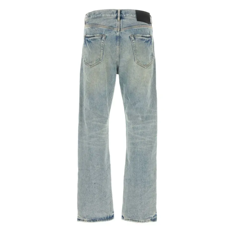 Purple Brand Knie Blowout Jeans combineren een mid-rise straight-leg silhouet met een kenmerkende distressed knie en een licht-indigo ‘dirty’ wassing. Ontworpen voor dagelijkse casual kleding, ze balanceren ruige details met verfijnde afwerking. Belangrijkste kenmerken: Licht Indigo | Katoen | constructie | Knoopgulp | Verstevigde riemlussen | Gevoerde achterzakken en juk | Bar-tack stiksels en klinknagels | Vijf-pocket styling | Distressed knie | Dirty wash | Whiskering | Kenmerkende leren patch en hangtag | Afmetingen & pasvorm: Voorkant rise (maat 32): 32,1 cm | Achterkant rise (maat 32): 40,6 cm | Binnenbeenlengte (maat 32): 83,8 cm | Pijp opening (maat 32): 21,6 cm | Mid rise | Straight leg | Samenstelling & onderhoud: 100% Katoen | Machinewas koud, fijne was. Niet bleken. Laag drogen in de droogtrommel of hangend drogen. Strijken op lage temperatuur indien nodig.