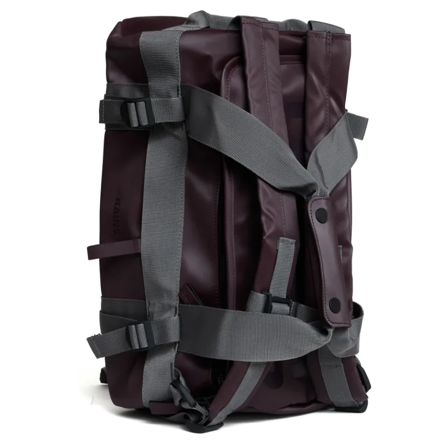 De Rains Weekendtas is een compacte, waterbestendige duffel die is ontworpen voor korte trips en dagelijks gebruik. Het combineert een PU-gecoate waterdichte stof met georganiseerde vakken en gewatteerde riemen voor comfortabel transport. Belangrijkste kenmerken: Bruin | Bordeaux | PU-gecoate stof | Waterbestendigheid (waterkolom: 8000 mm) | W3 — bescherming tegen lichte regen | Enkel hoofdvak | Zijvak met rits | Interne mesh vakken | Twee vakken onder de flap | Zijdelingse compressiebanden | Verstevigde bodem | Gewatteerde verstelbare schouderbanden | Gewatteerde draaghandvatten | U-vormige flap met ritssluiting | Compact duffel silhouet | Gecoate rits | Afmetingen & pasvorm: Hoogte 21,5 cm × Breedte 42 cm × Diepte 21,5 cm | Inhoud: 19 liter | Gewicht: 1,03 kg | Samenstelling & onderhoud: PU-gecoate stof