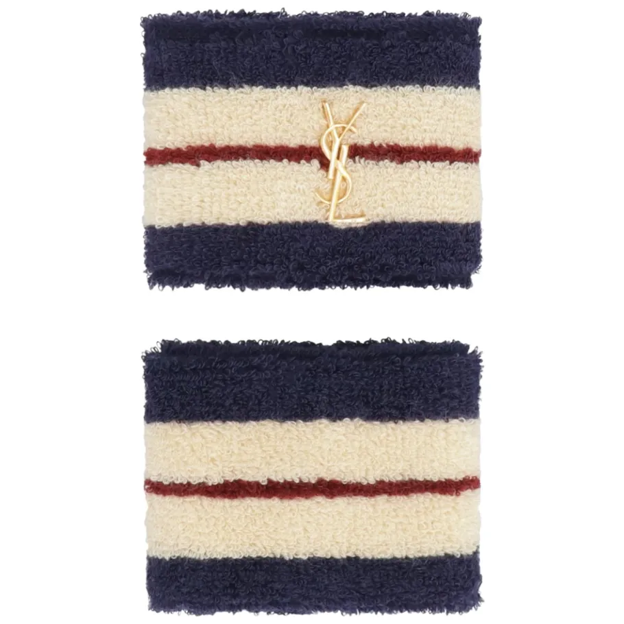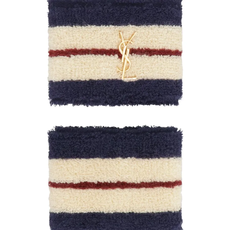 Saint Laurent handschoenen met gebreide manchetten en een metalen logo aan de voorkant. Hoofdzakelijk gemaakt van katoen voor comfortabel dagelijks gebruik. Belangrijkste kenmerken: Multicolor | Wit | Katoen | Gebreide manchetten | Metalen logo aan de voorkant | Samenstelling & verzorging: 16% polyamide | 1% elastaan | 83% katoen