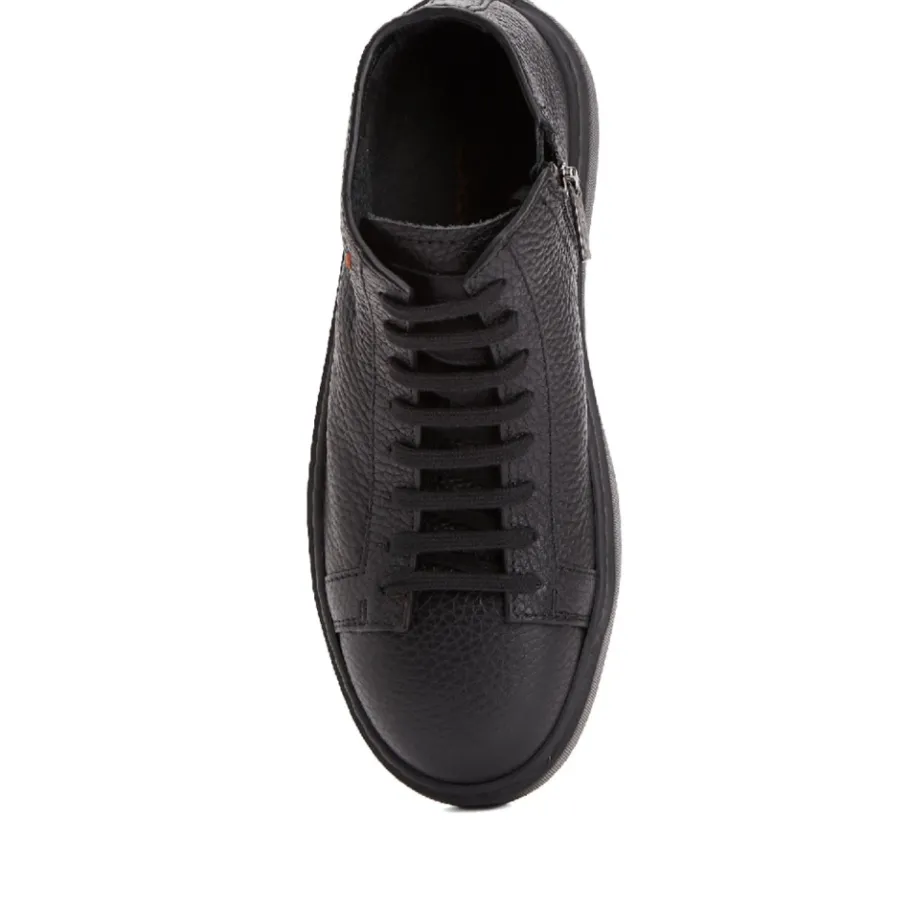 Santoni Boot van leer die verfijnd Italiaans vakmanschap combineert met praktische dagelijkse slijtage. Ontworpen met een rubberen zool en een makkelijke ritssluiting, past hij bij smart-casual garderobes. Belangrijkste kenmerken: Zwart | Leer | Rubberen zool | Zijrits | Vetersluiting | Ronde neus | Halfhoge silhouet | Samenstelling & verzorging: Buitenkant: 100% Leer | Voering: 100% Kalfsleer | Zool: Rubber