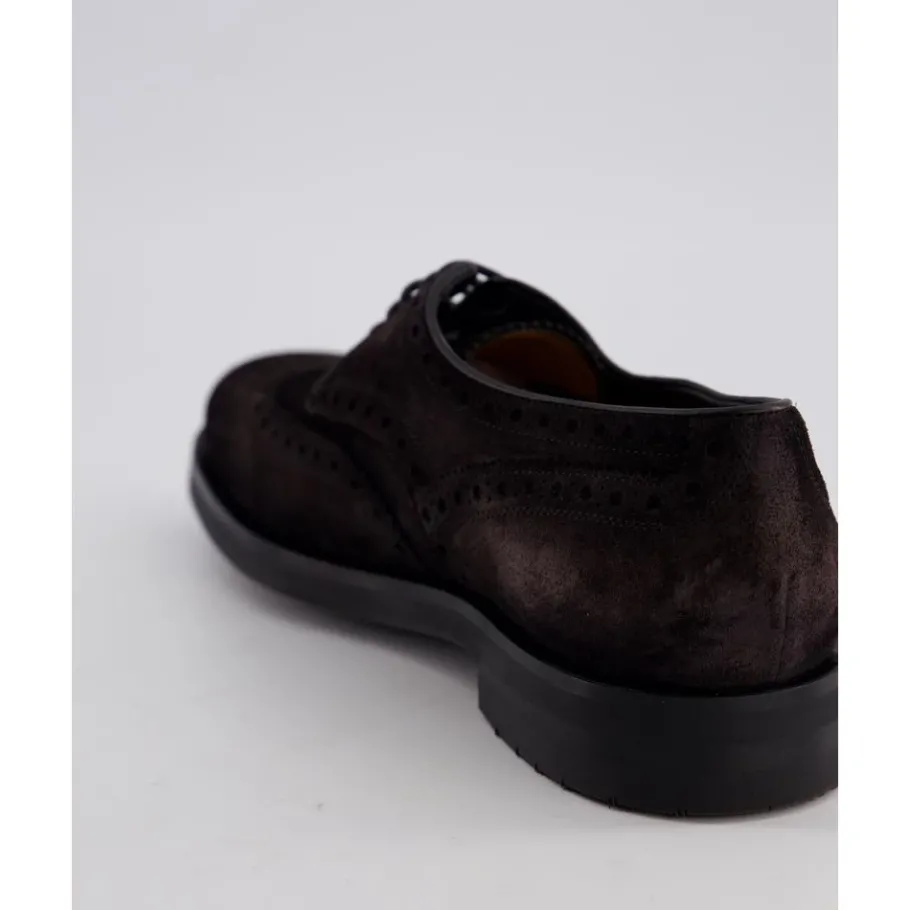 De Santoni Emil Gex Veterschoen combineert klassieke brogue details met een verfijnde suède bovenkant voor een verzorgde smart-casual en formele look. Belangrijkste kenmerken: Grijs | Kalfs suède | Rubberen zool | Vetersluiting | Brogue perforaties | Afgeronde neus | Gestikte apron | Afmetingen & pasvorm: Valt normaal qua maat — bestel uw gebruikelijke maat. | Samenstelling & onderhoud: Kalfs suède (bovenkant) | Kalfsleer (voering) | Rubber (zool)