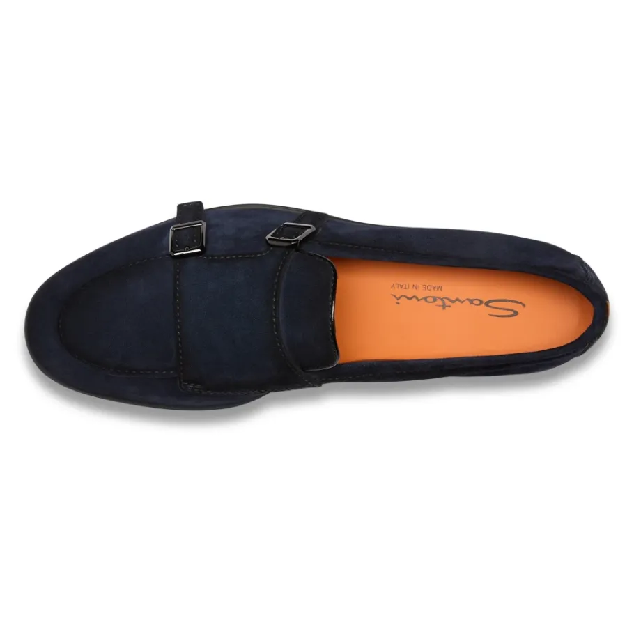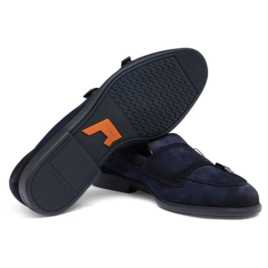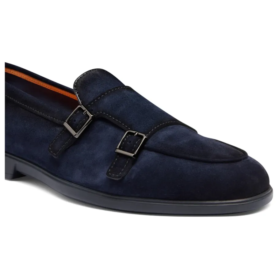 Het vakmanschap van Santoni komt hier tot uiting in moderne vormen en onverwachte details. Deze dubbele monniksband is een herinterpretatie van de grote klassieker in een casual stijl en is gemaakt van omgekeerd suède met een fijne textuur en zijdezachte feel. De rubberen zool zorgt voor een comfortabele pasvorm en is versierd met het kenmerkende detail van het Maison in Santoni-oranje.