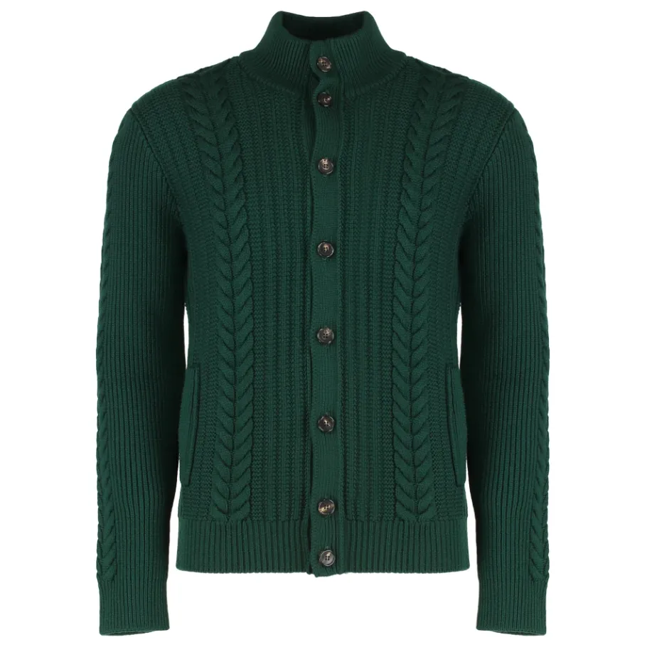 SLOWEAR Vest in maagdelijke wol — een vest met lange mouwen en knoopsluiting aan de voorkant in een elegant donkergroen, gemaakt van zachte maagdelijke wol voor veelzijdige gelegenheden van dag tot avond. Belangrijkste kenmerken: Groen | Maagdelijke wol | Knoopsluiting aan de voorkant | Twee zijzakken | Klassieke kraag | Lange mouwen | Samenstelling & verzorging: 100% Maagdelijke wol | Raadpleeg de instructies van de fabrikant