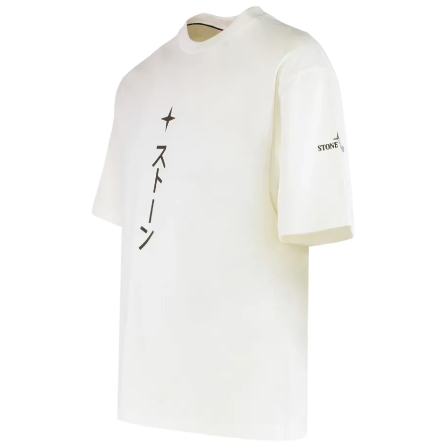 Het Stone Island Island Print T-Shirt is een T-shirt met korte mouwen van katoenen jersey dat opvalt door zijn gedurfde geprinte graphics op de voor- en achterkant en een logo-opdruk op de mouw. Ontworpen voor casual, streetwear-achtige looks, past het gemakkelijk bij een jeans of onder een jas. Belangrijkste kenmerken: Wit | Katoen | Ronde hals | Korte mouwen | Geprinte voor- en achterkant | Logo-opdruk op de mouw | Geribbelde halslijn | Afmetingen & pasvorm: Relaxte pasvorm | Samenstelling & onderhoud: 100% katoen | Machinewas koud (30°C). Niet bleken. Niet in de droogtrommel. Niet chemisch reinigen. Drogen in de schaduw. Strijken op lage temperatuur.