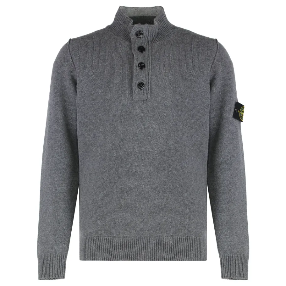 Stone Island trui met halve rits en vilten details is een gebreide trui van lamswol en nylon die een korte rits combineert met een met vilt gevoerde knoopsluiting voor een gestructureerde gelaagdheid en duidelijke details. Belangrijkste kenmerken: Grijs | Lamswol | Gauge 7 (dik breisel) | Korte ritssluiting | Met vilt gevoerde knoopsluiting met knopen | Geribbelde manchetten en zoom | Logo badge op de linker mouw | Geribbelde opstaande kraag met binnenkant van vilt | Omgekeerde steekbanden op de schouders en armsgaten | Tricotsteek | Afmetingen & pasvorm: Regular fit | Samenstelling & verzorging: 80% Wol | 20% Polyamide