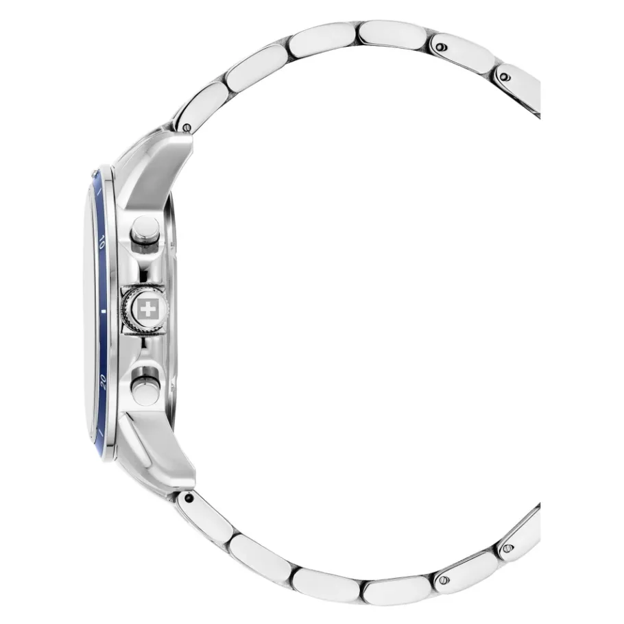 Ontdek de Swiss Alpine Military Herrenuhr Collection Douglas horloge, met datumaanduiding en stopwatchfunctie. Met een kastdiameter van ongeveer 44 mm (exclusief de kroon) en een kasthoogte van ongeveer 11,9 mm, heeft dit horloge een kleurrijke wijzerplaat met lichtgevende wijzers. Gemaakt van roestvrij staal, aangedreven door een Zwitsers quartz uurwerk en waterbestendig tot 10 ATM, biedt dit horloge functies zoals uur, minuut, seconde en datumaanduiding. De blauwe wijzerplaat, zilveren en blauwe kast en zilveren roestvrijstalen armband maken dit horloge tot een stijlvol accessoire. Compleet met mineraalglas en een vouwsluiting.
